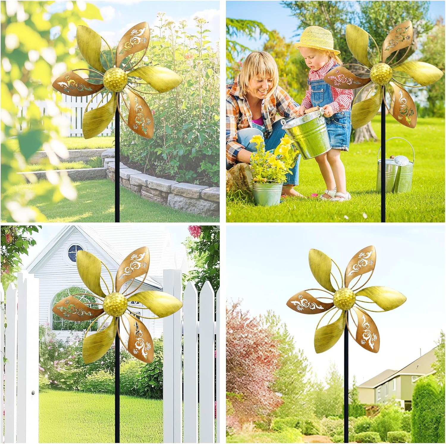 - Artistic Laser-Cut Floral Design: Kinetic wind spinner features intricate laser-cut flower patterns, low-friction sealed bearings enable spin smoothly even in 3mph breezes, 2 prong arch anchor ground stake for extra stability.