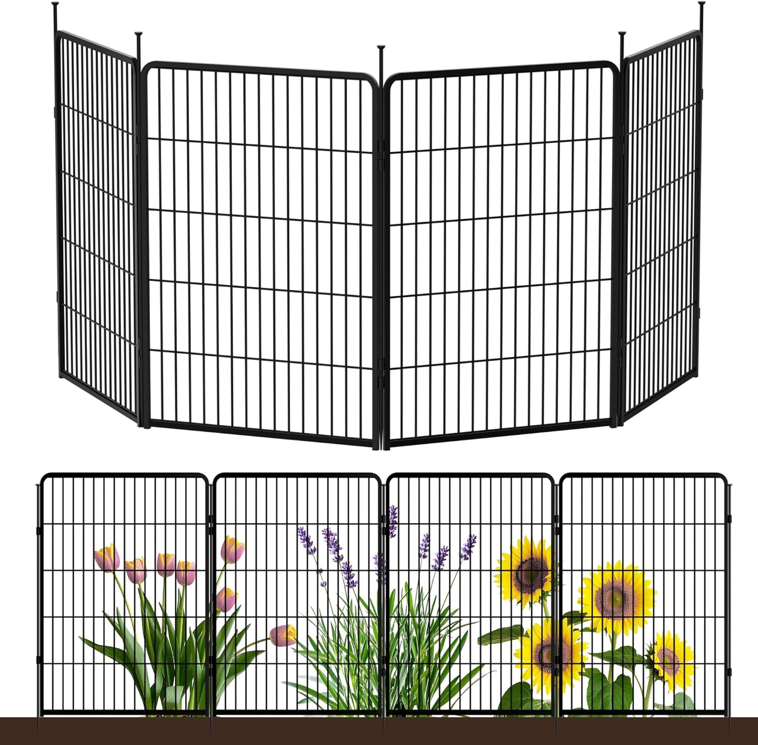 Doorless Garden Fence 40 in(H) x 8.9 ft(L) 4 Panels, Heavy Duty Metal Animal Barrier Fence, No Dig Fence for Dogs, Rabbit Fence for Garden, Black