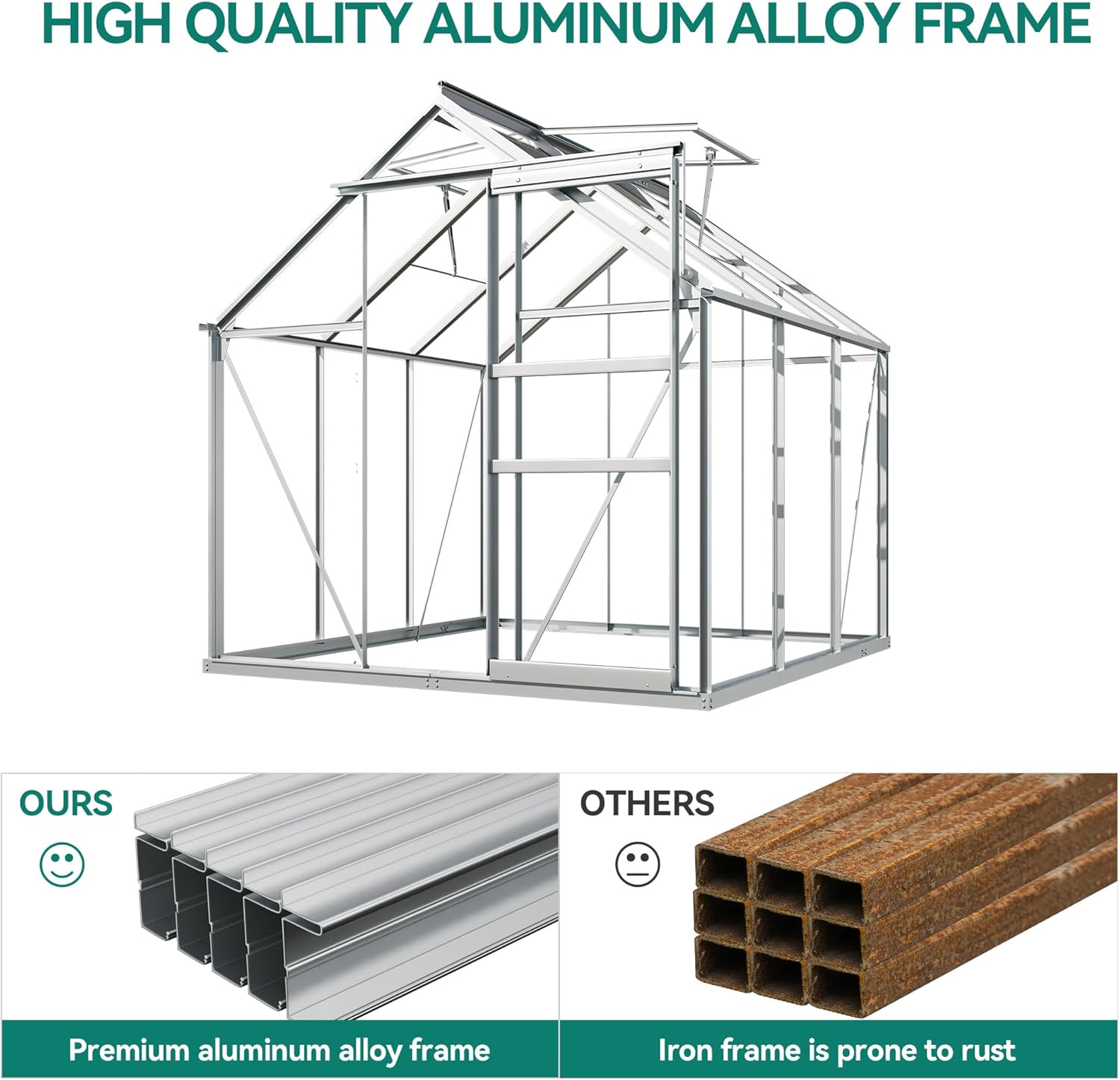- ALL SEASON GREENHOUSE: Top tilt angle design of the polycarbonate aluminum greenhouse helps to achieve effective wind resistance and drainage capacity; This beautiful and convenient product is ideal for gardens, decks, and backyards for year-round plant cultivation and protection
