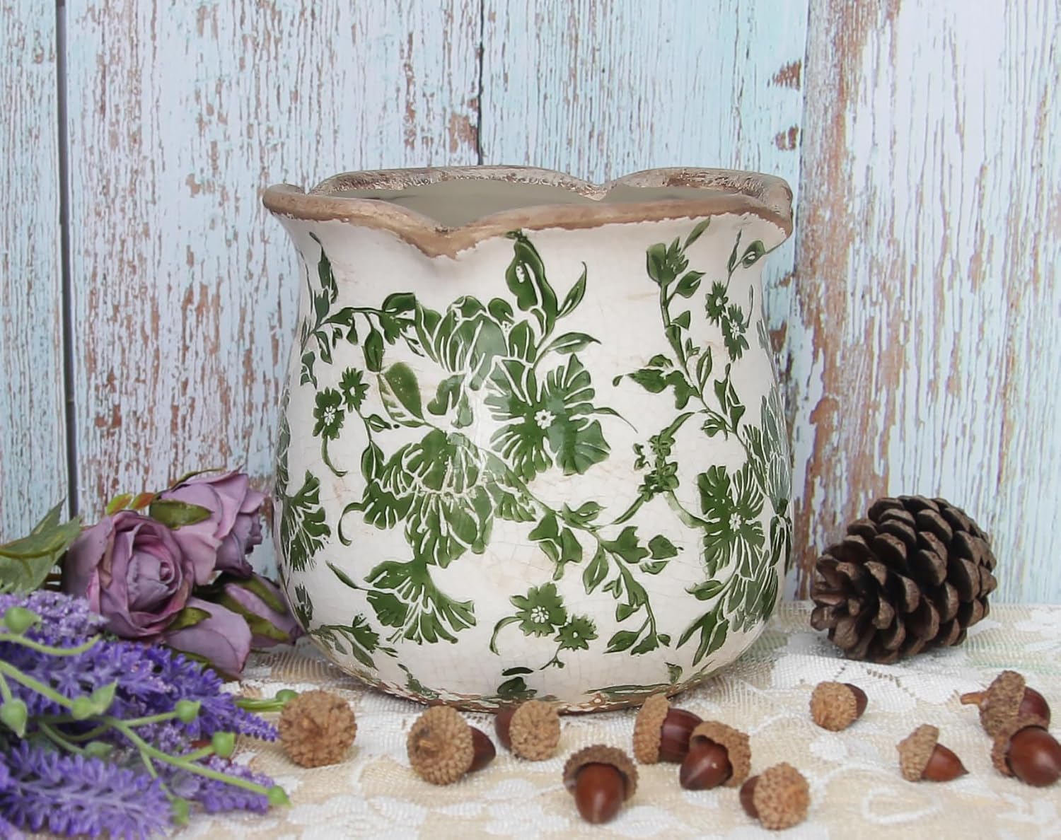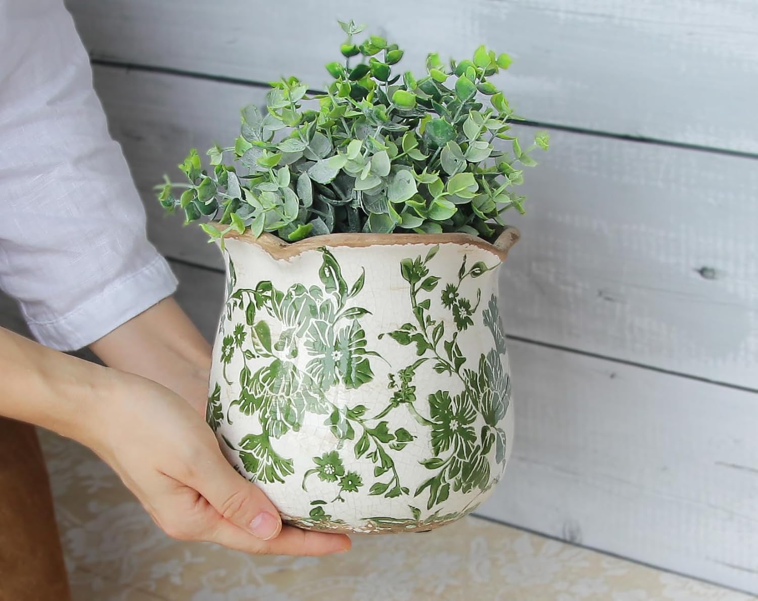 - VINTAGE FLOWER POT WITH DISTRESSED DETAILS: The slightly distressed pattern is designed to create a rustic, shabby chic aesthetic that adds character and warmth to your home décor.