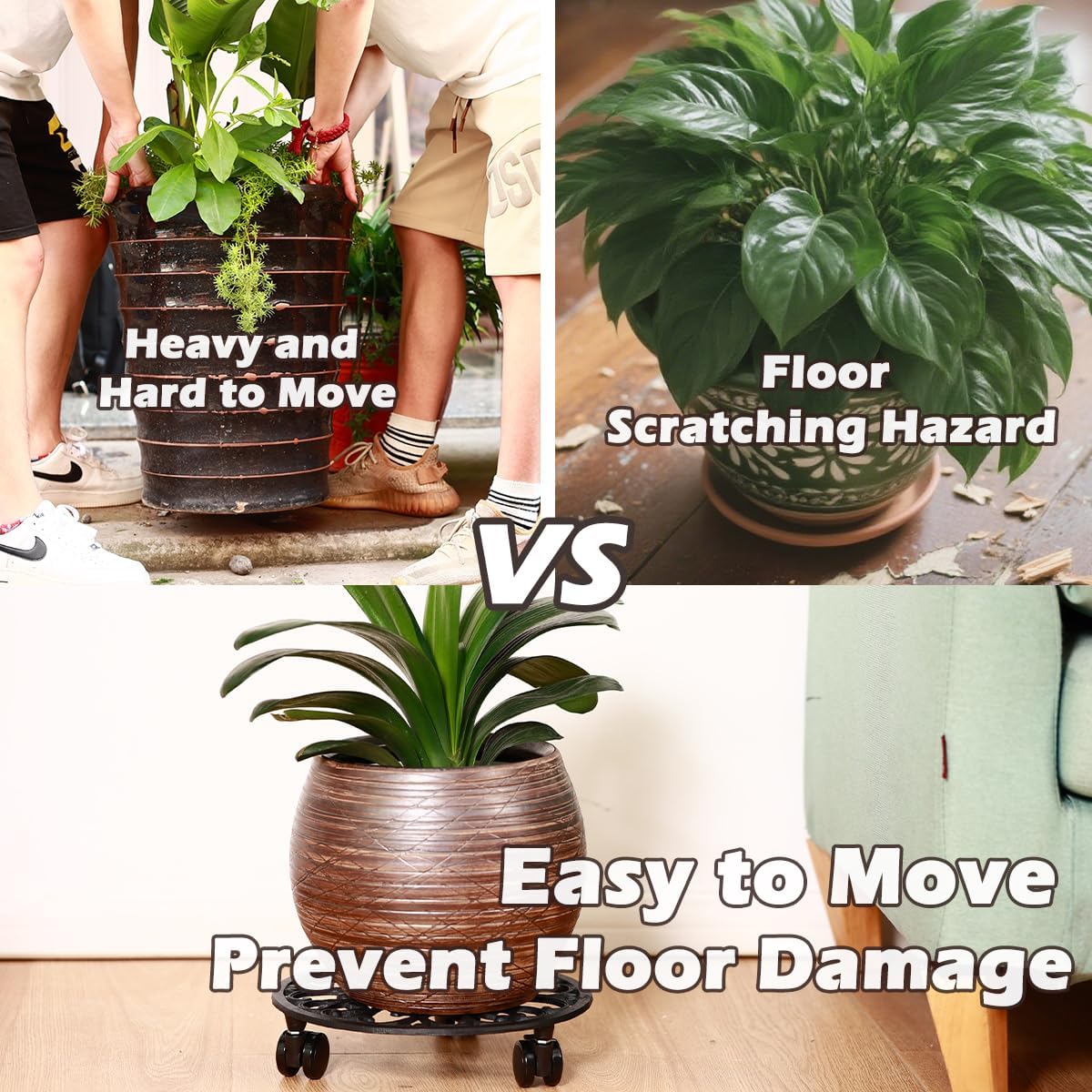 - Mobility Feature: Are the plants at home too heavy to move? Just push or pull your large plants to sunny or shady spots with these plant coasters with wheels, plant saucer with wheels can enhance air circulation around the plant