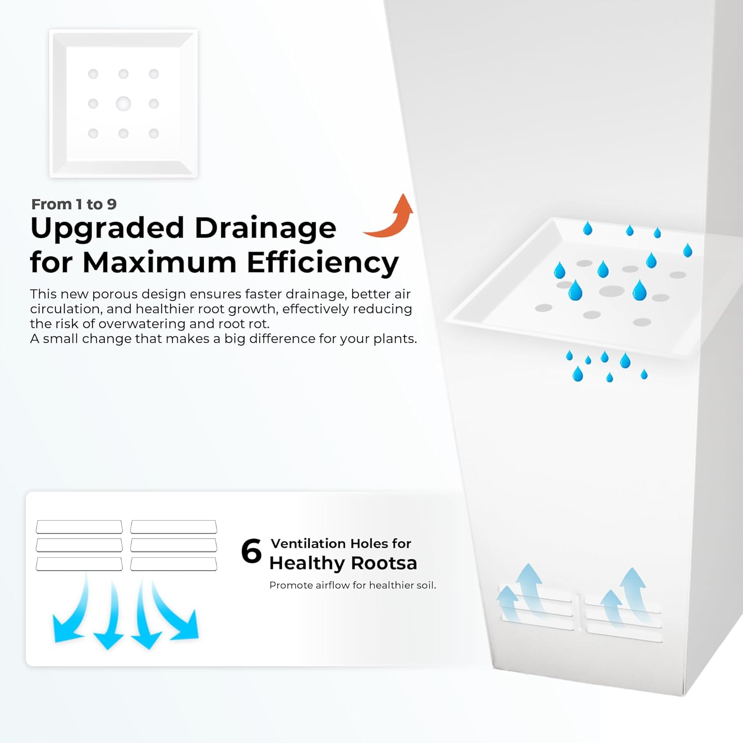 - Slotted Side Ventilation: Designed with slotted ventilation holes on both sides to improve airflow, enhance soil breathability, and support plant health.