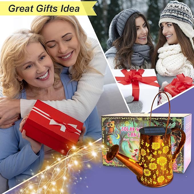 VOOKRY Solar Lights Outdoor Decoration, Large Hanging Metal Solar Watering Can Lights Waterproof Sunflower Garden Decor Yard Lights Outside for Porch Lawn Patio, Birthday Gifts for Women Mom Grandma
