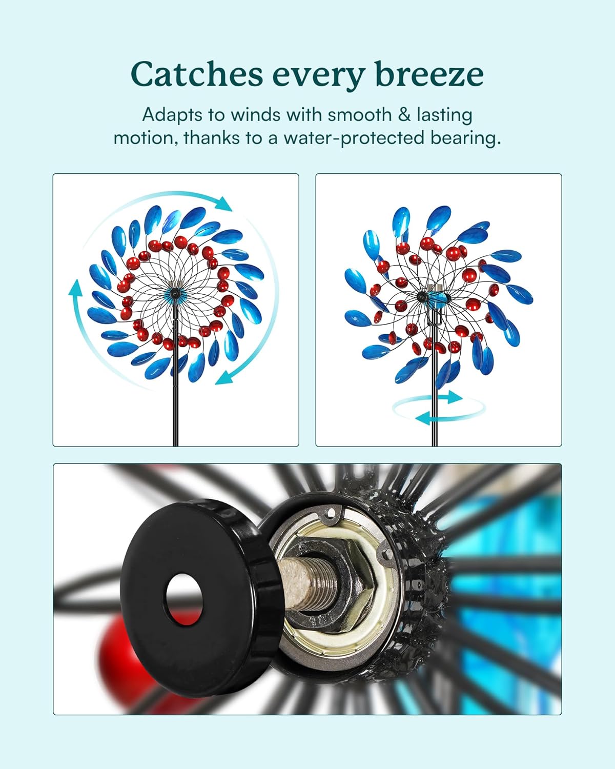 - 360° Smooth Rotation & Durable Design – CyanOasis precision ball bearings allow the wind spinner spin quietly and smoothly in breezes. Features hand-coated, weather-resistant finishes and sealed bearing caps for rust-proof, waterproof performance, ensuring long-lasting outdoor use even in rain or wind.