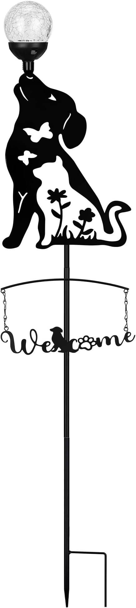 - 【Upgraded thicker metal】Unlike other black dog statue solar lights, the metal is thickened to resist bending. These garden outdoor statues are made of flat-cut metal plate and treated with black strong anti-rust treatment, which are durable and weatherproof. The sturdy metal stake has a screw lock that prevents the dog light from being blown off by strong winds.