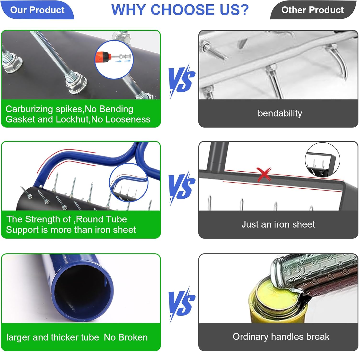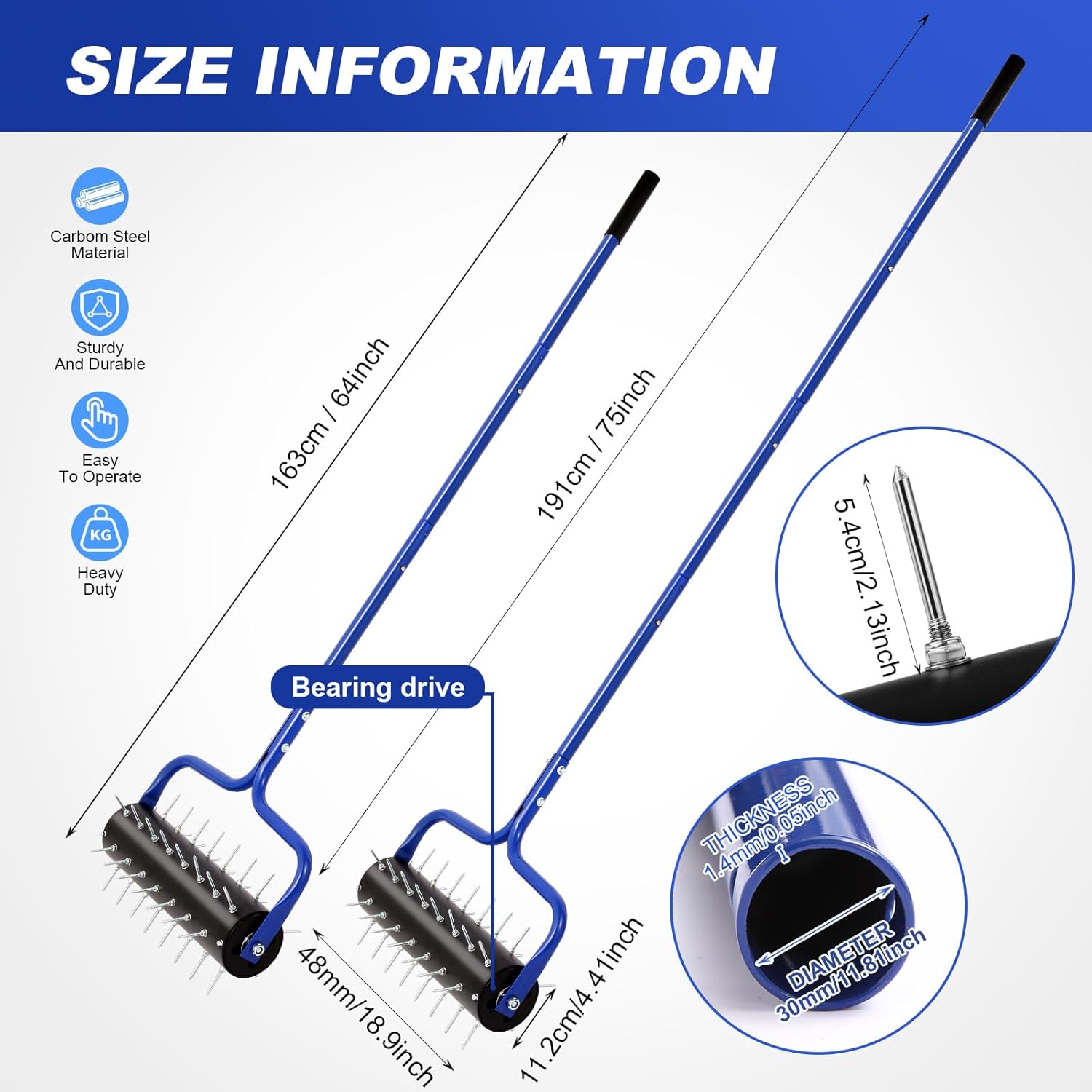 - Lawn Aerator, hand-operated aerator,garden tool, 21" Heavy Duty Rolling Spike Aerator,Preasembled Spikes,75" Adjustable Handle with Quick Clip, Stable U-Shape Construction, Assembly Only Needs 3-5 Minutes.