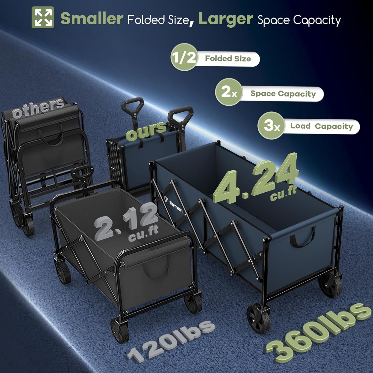 - 【𝟑𝟒" 𝐄𝐱𝐭𝐫𝐚 𝐋𝐨𝐧𝐠 𝐋𝐢𝐠𝐡𝐭𝐰𝐞𝐢𝐠𝐡𝐭 𝐖𝐚𝐠𝐨𝐧 𝐰𝐢𝐭𝐡 𝟏𝟐𝟎𝐋 𝐂𝐚𝐩𝐚𝐜𝐢𝐭𝐲】: Featuring a patented design, this wagon is 50% longer than standard wagons. Its spacious interior easily accommodates long items like folded tents. Despite its large capacity, it weighs only 14 lbs, making it 40% lighter than other wagons! You can carry this portable wagon effortlessly.