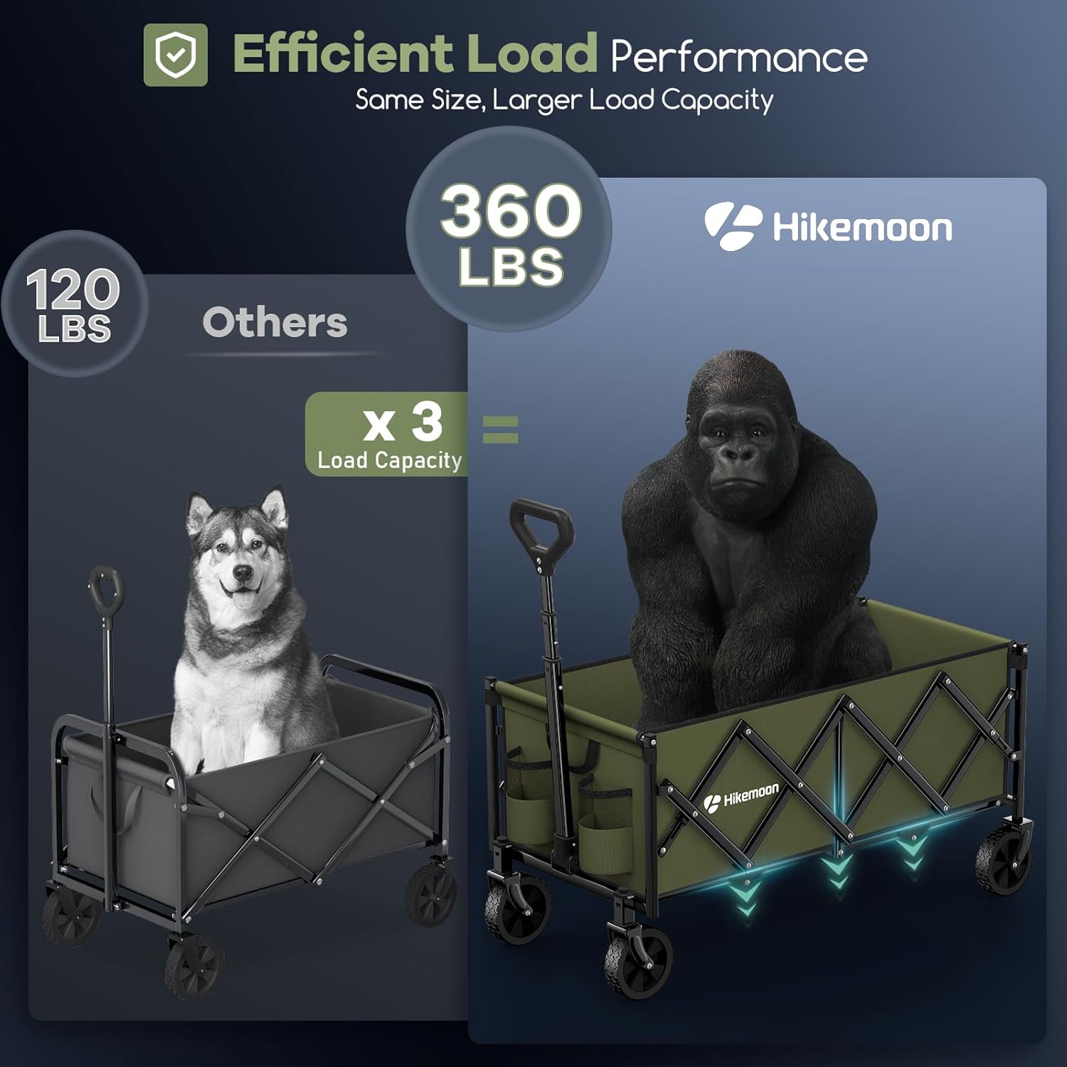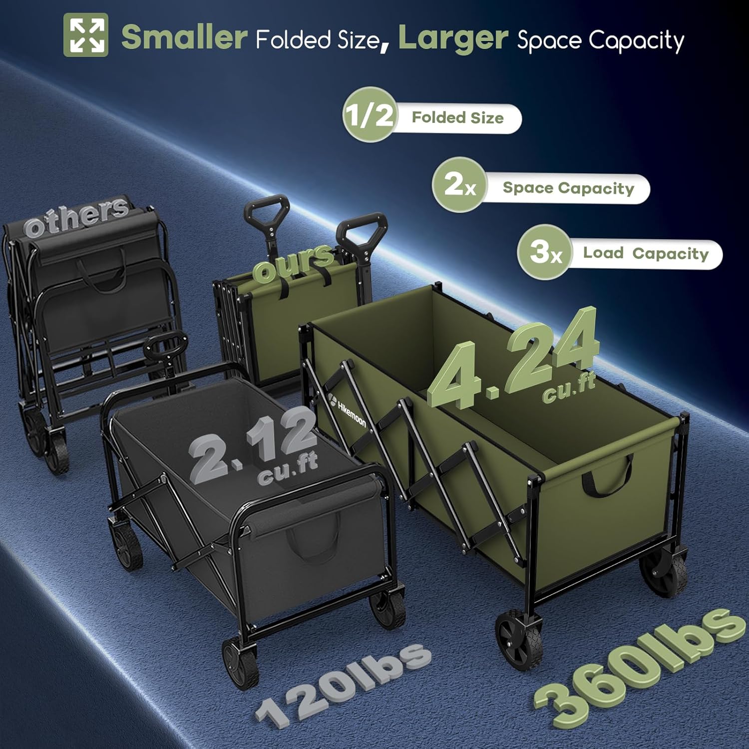 - 【𝟑𝟒" 𝐄𝐱𝐭𝐫𝐚 𝐋𝐨𝐧𝐠 𝐋𝐢𝐠𝐡𝐭𝐰𝐞𝐢𝐠𝐡𝐭 𝐖𝐚𝐠𝐨𝐧 𝐰𝐢𝐭𝐡 𝟏𝟐𝟎𝐋 𝐂𝐚𝐩𝐚𝐜𝐢𝐭𝐲】: Featuring a patented design, this wagon is 50% longer than standard wagons. Its spacious interior easily accommodates long items like folded tents. Despite its large capacity, it weighs only 14 lbs, making it 40% lighter than other wagons! You can carry this portable wagon effortlessly.