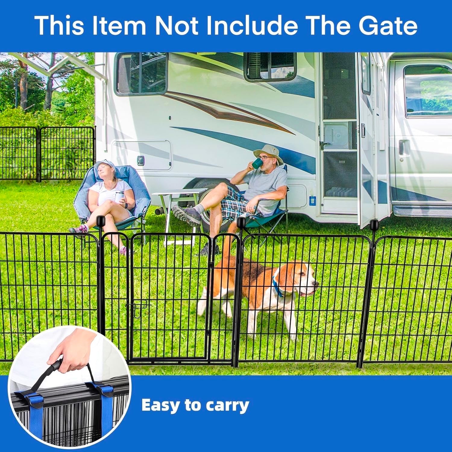 - Garden Fence for Dogs: Adavin Garden Fence with Gate Consists of 8 Panels 54 Inches High X 27 Inches Wide, Total Length of 17.7 Feet. This Black Metal Decorative Garden Fencing is Welded with Thick Heavy Metal Material, Coated with Rust-Proof Coating, and The Spacing of The Barbed Wire is Small.Important: This fence set has no gate