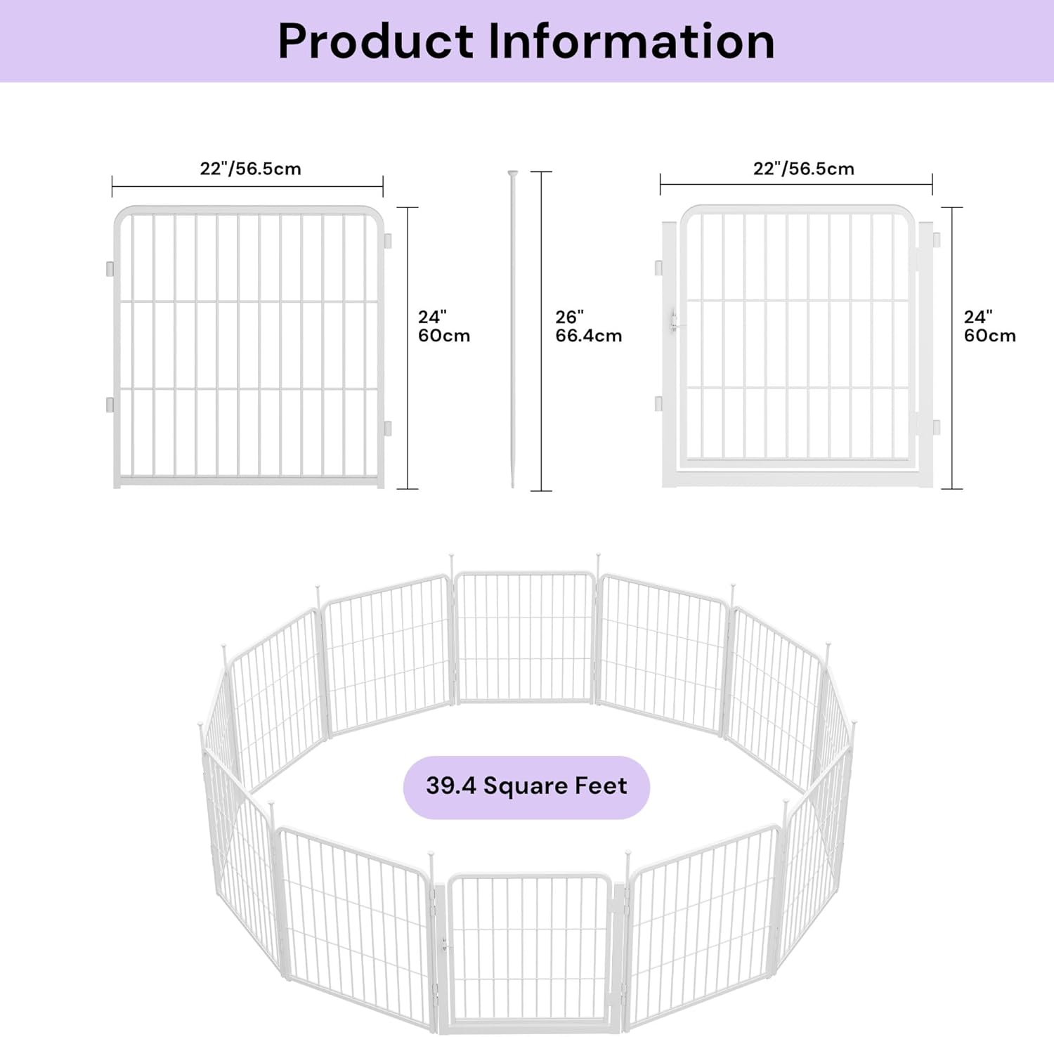 Decorative Garden Fence with Gate 24 in(H) x 22.2 ft(L) 12 Panels, Heavy Duty Metal Animal Barrier Fence for Yard, Flower Bed Fencing, Garden Border Fence, Easy Set Up, White
