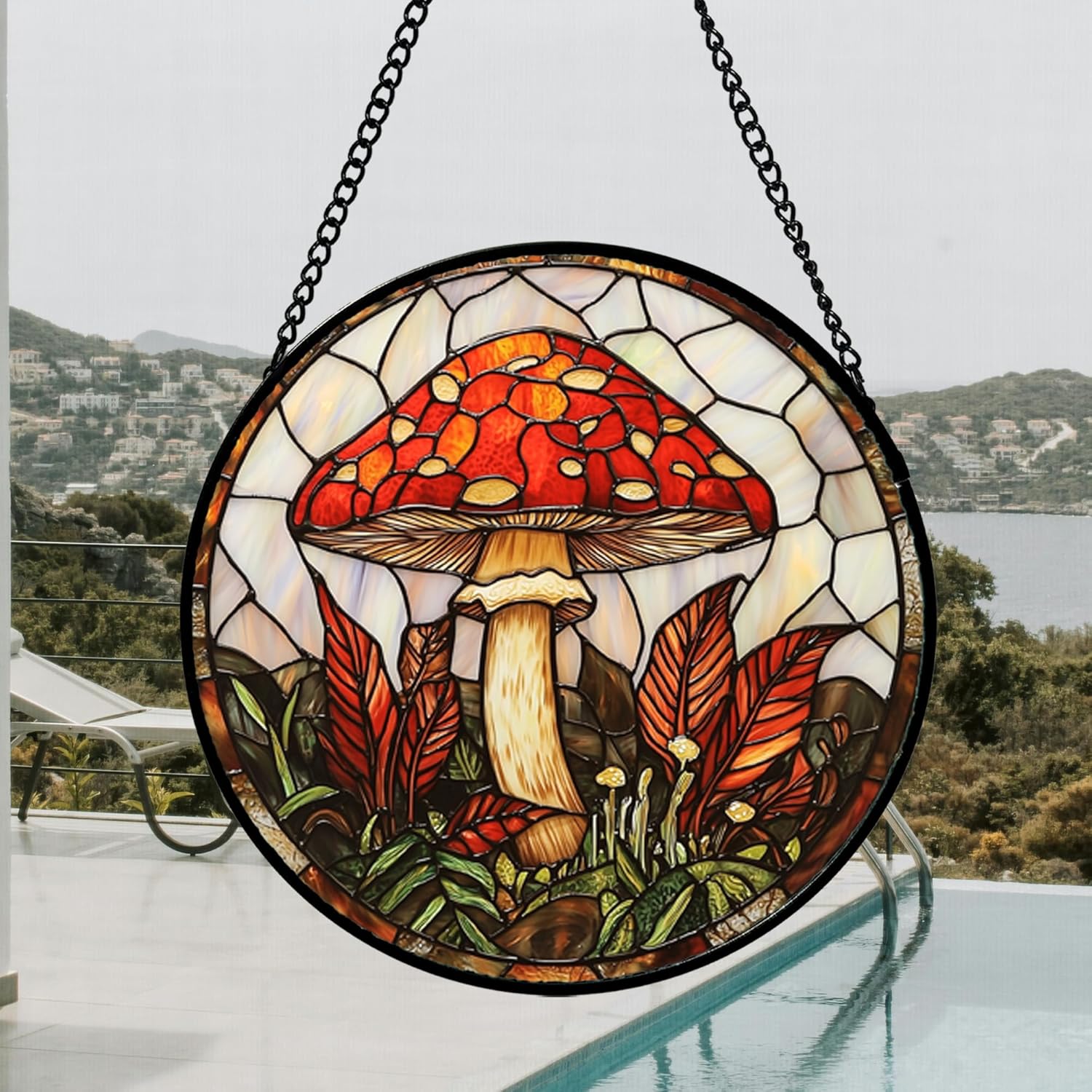 Stained Glass Window Hanging, Big Red Mushroom Suncatcher for Doors Home Sun Catchers Decoration and Christmas, Mother's Day Birthday Gifts for Women, Men, and Mom 14.9x14.9 in