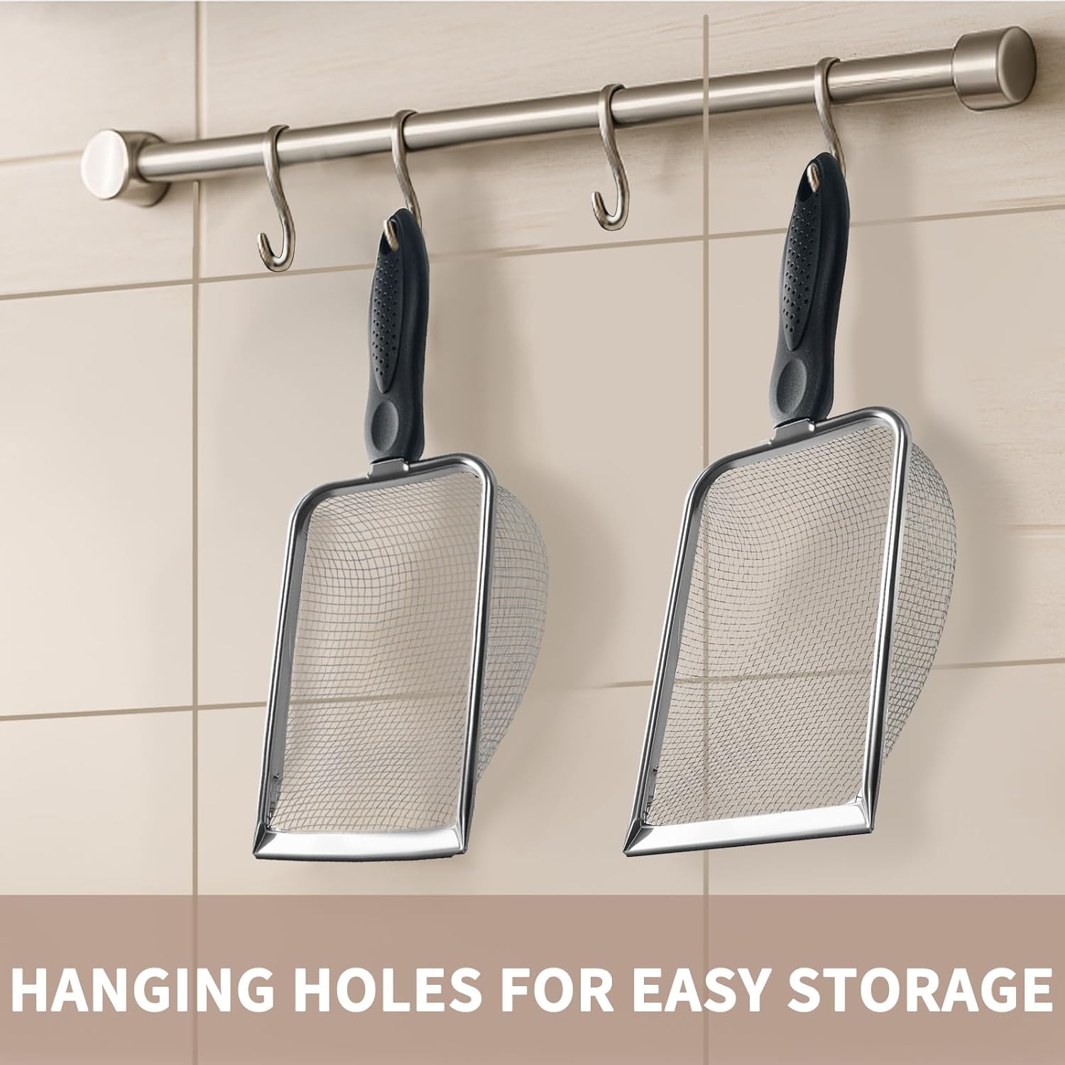 - Shovel-Sifter Hybrid Design: Why juggle multiple sifter? Our shovel-sifter combo lets you scoop and sift in one motion. The 4" wide head grabs soil directly from bags or garden beds, while vigorous shaking filters debris through your chosen mesh, saving your 50% gardening time.