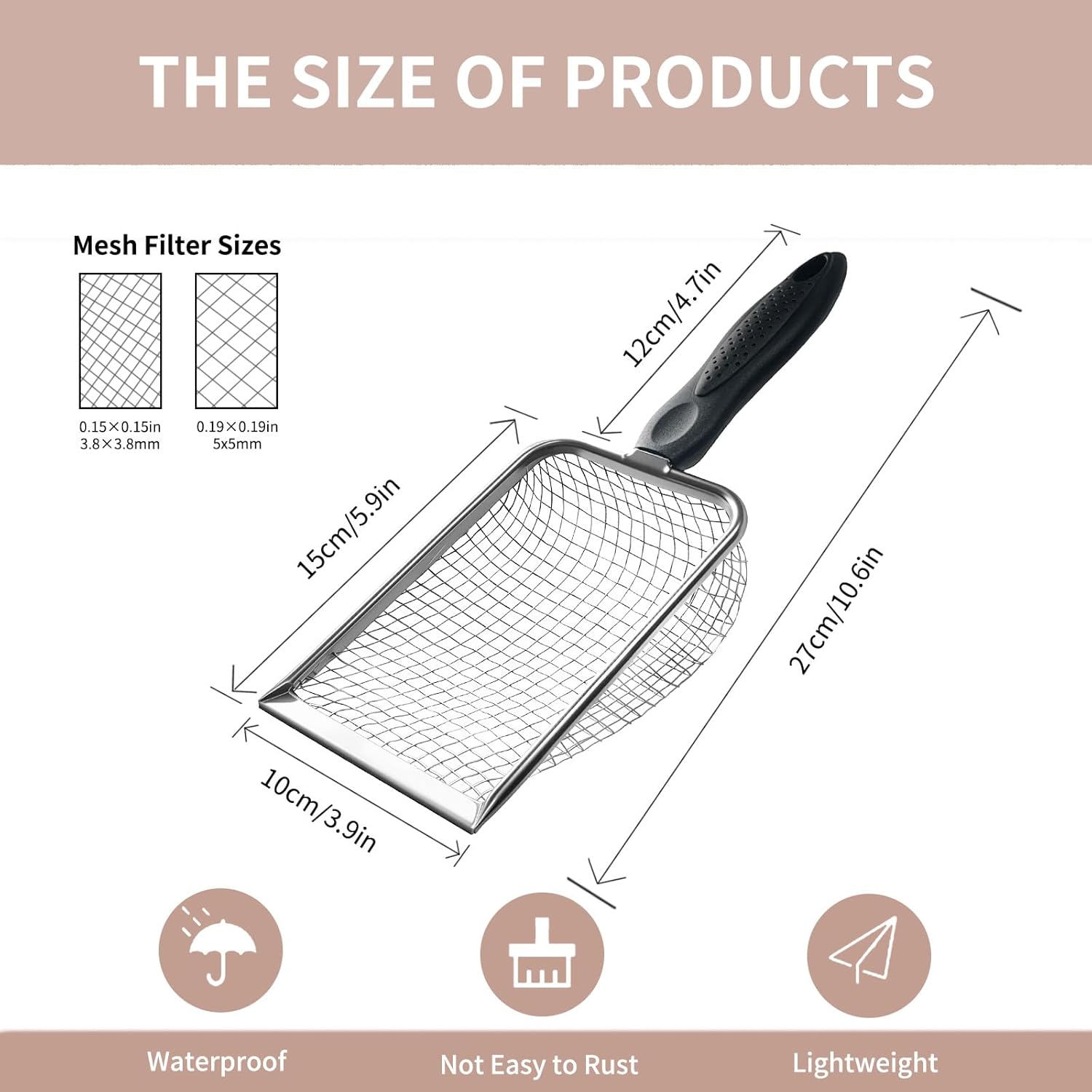 - Shovel-Sifter Hybrid Design: Why juggle multiple sifter? Our shovel-sifter combo lets you scoop and sift in one motion. The 4" wide head grabs soil directly from bags or garden beds, while vigorous shaking filters debris through your chosen mesh, saving your 50% gardening time.