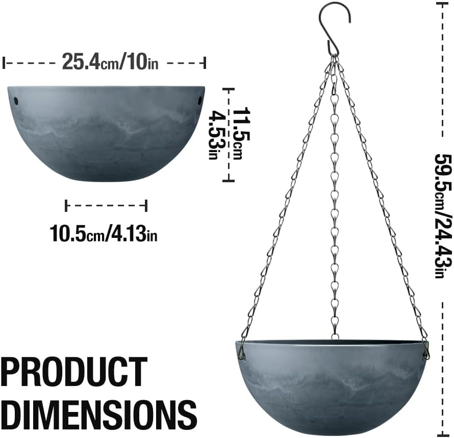- 2 in 1 Planter pot: Our 10 inch marble hanging flower pots can be hung or placed. Installing the chain hanger is simple, just slide it in from the hole. After removing the metal hanging chain, you can take care of your plants or place them on the table as a tabletop flower pot.