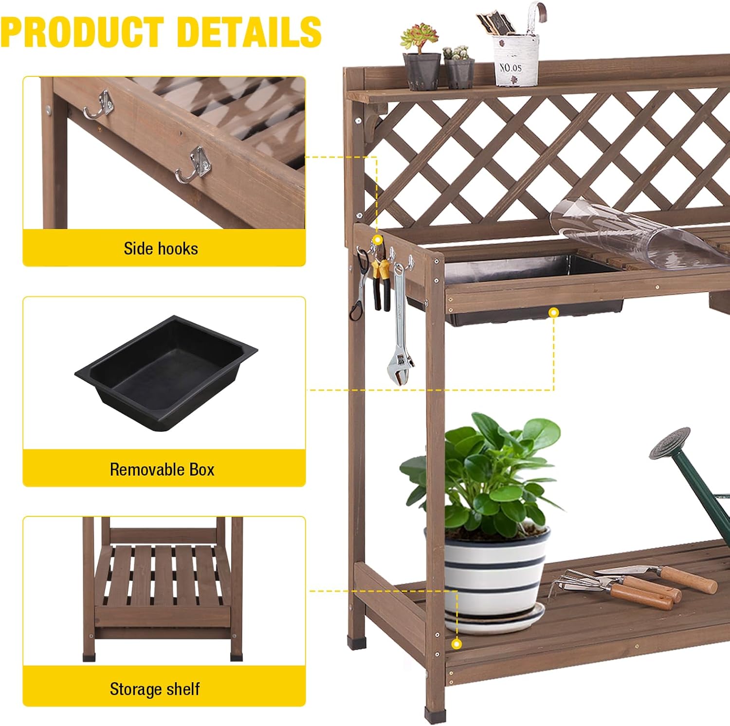 - Durable & Customizable: Made of sturdy fir wood with a natural finish, this potting bench is durable and can be painted or customized to match your outdoor or indoor decor.