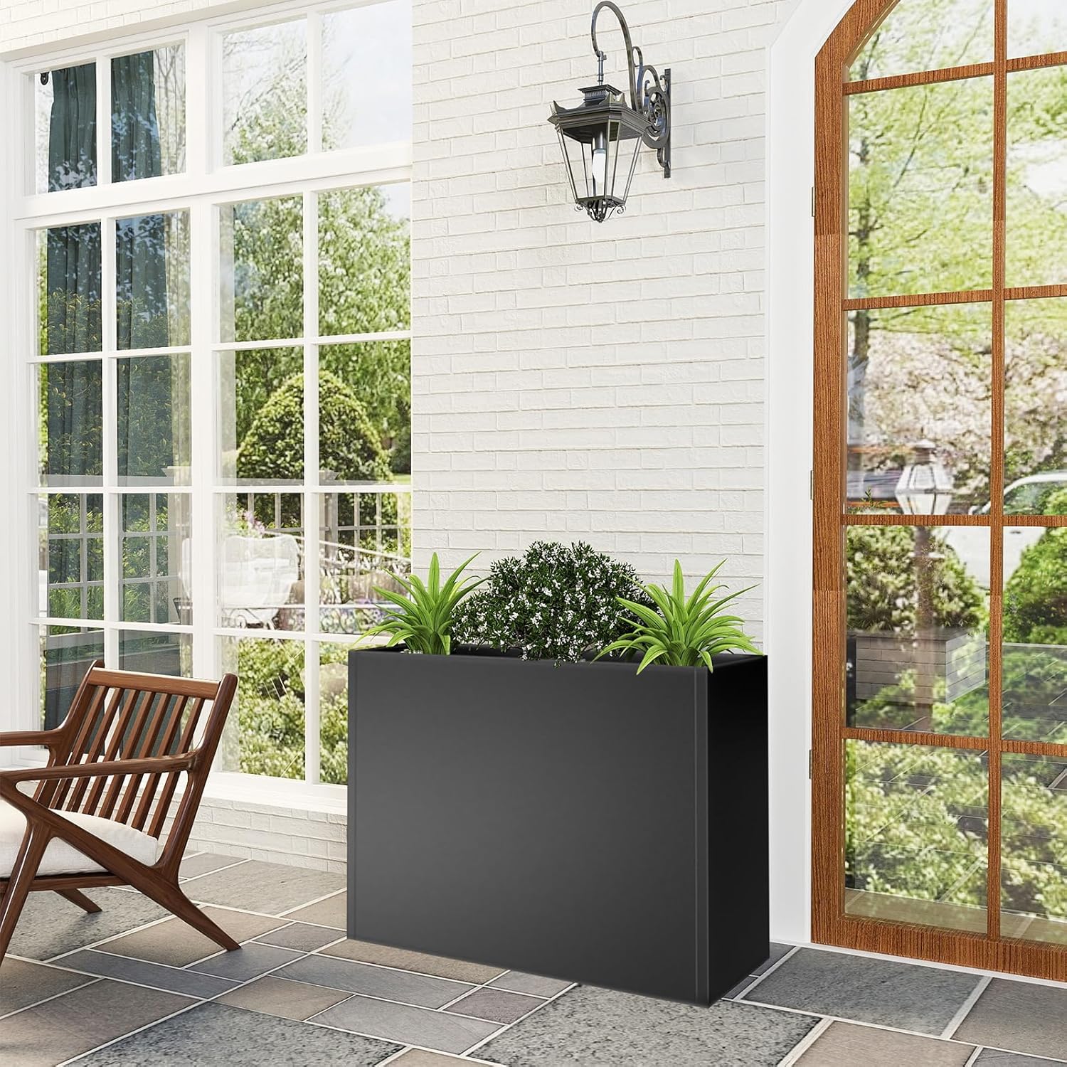 - 【Durable Metal Construction】The tall rectangular planter box is 30"L x 12"W x 24"H, made from high-grade rust-resistant metal that is weather resistant and UV protected for indoor or outdoor use. Its robust Metal construction guarantees structural integrity and visual appeal for years to come.