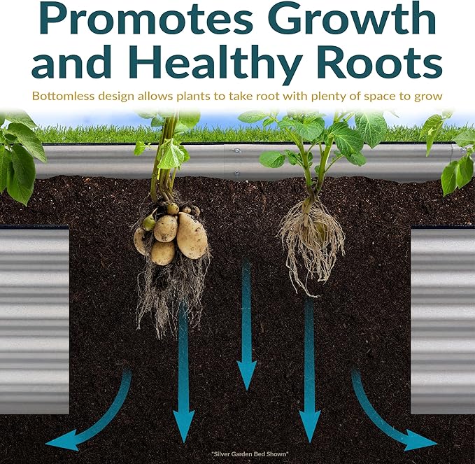 - IMPROVED GROWING CONDITIONS: This sturdy galvanized raised garden bed offers better growing conditions for vegetables and flowers. Raised garden beds allow anyone to choose the right soil for specific plants. Plus, the bottomless design ensures proper soil drainage.