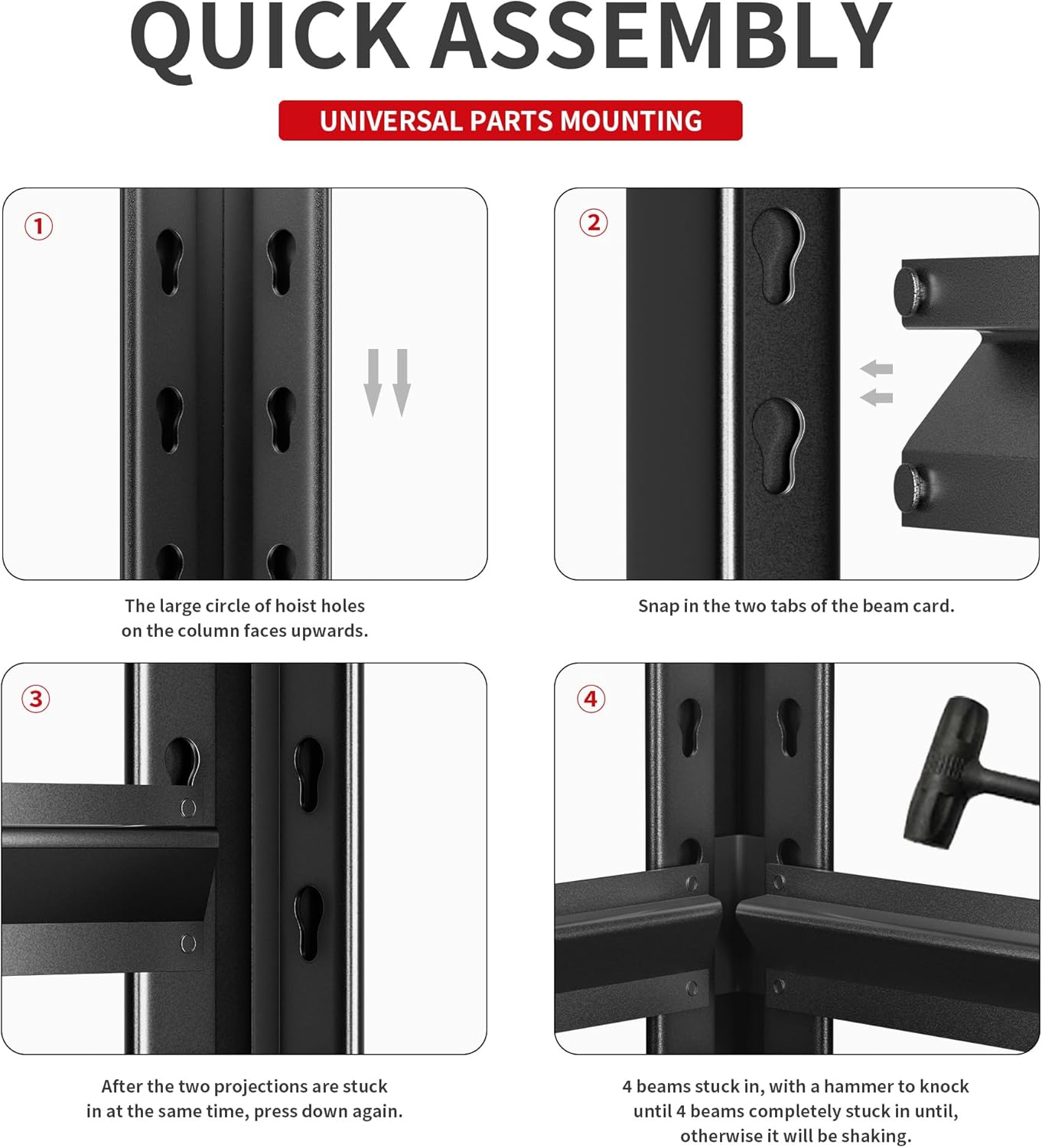 - 🍖【Quick & Easy Assembly】Assembling this storage shelving unit is a breeze! With clear instructions and minimal tools required, you’ll have this shelf organizer set up in no time, making it an effortless addition to your garage or workshop.