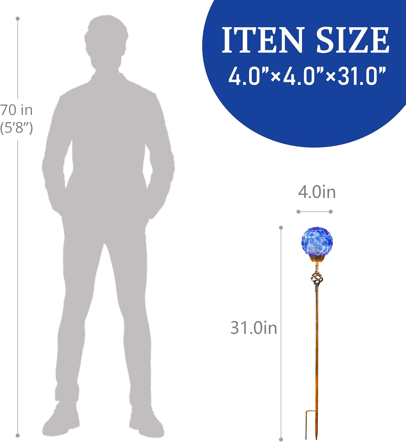 Garden Solar Lights Outdoor, Decorative LED Honeycomb Glass Ball Garden Stake, Glass and Metal Outdoor Decoration, 4 x 31 Inch (Dark Blue)