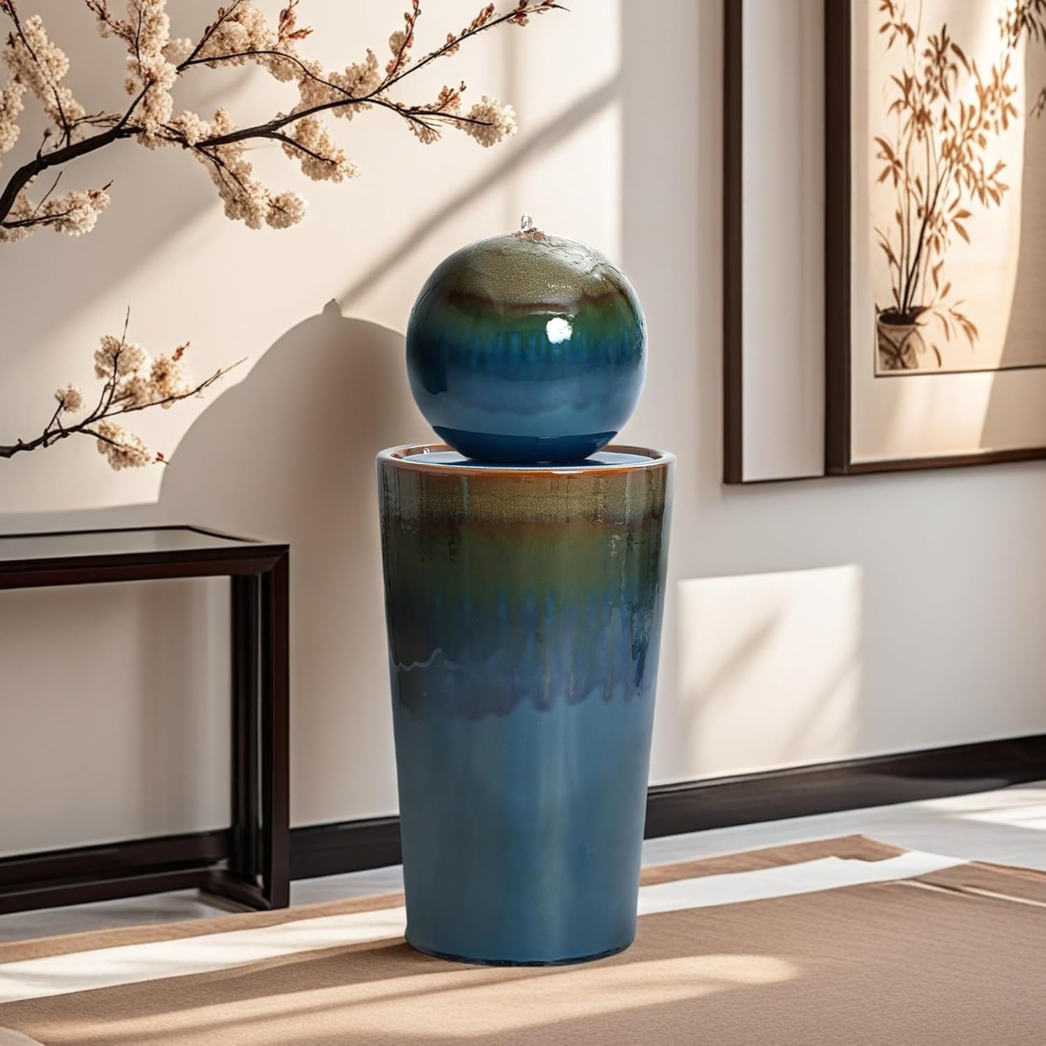- Elegant Ceramic Design: Featuring a stunning glazed blue finish with a sleek spherical top, this ceramic outdoor water fountain adds a touch of sophistication to any garden, patio, or outdoor space.