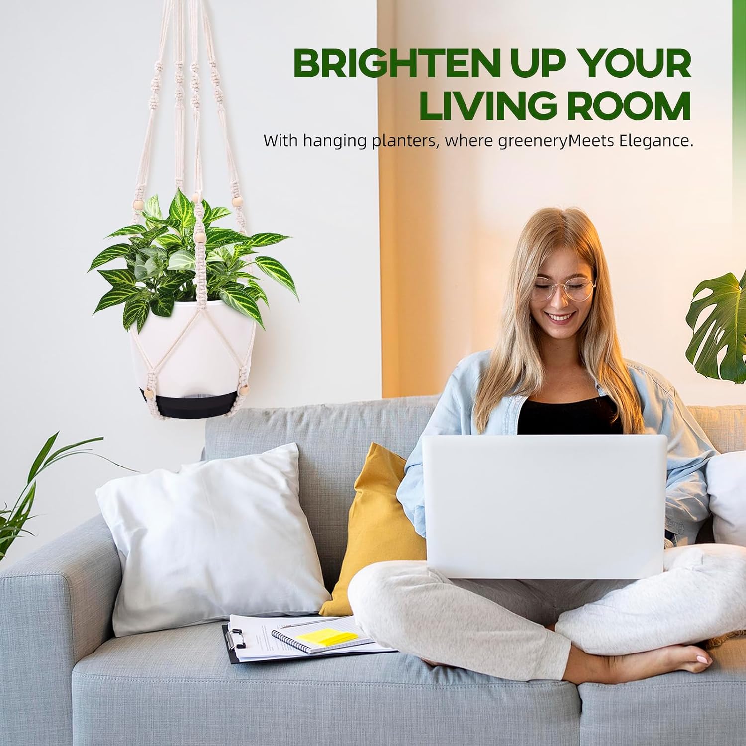 2-Pack 7.2-Inch Self-Watering Hanging Planters for Indoor & Outdoor Plants,34-Inch macrame hanger plant pots indoor with drainage,Small Hanging Planters & Baskets in White,With two sets of hooks