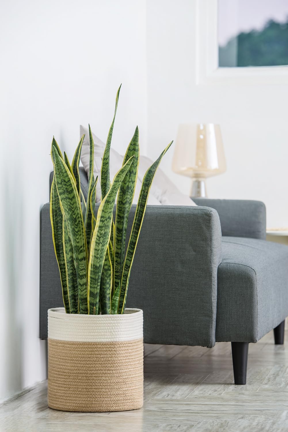 - Size: This rope basket is 12"(W) ×12"(H) , fits 12" flower pot. This cozy beige-bottom hand woven jute rope basket adds a stylish touch to your favorite large plant for home, offices, and restaurants with rustic simplicity. Note: Pot and plants are not included in the basket. Explicit purpose: "This woven basket is designed for decorative display of potted plants (not for direct soil planting) and requires a waterproof liner when used with plants that need frequent watering"
