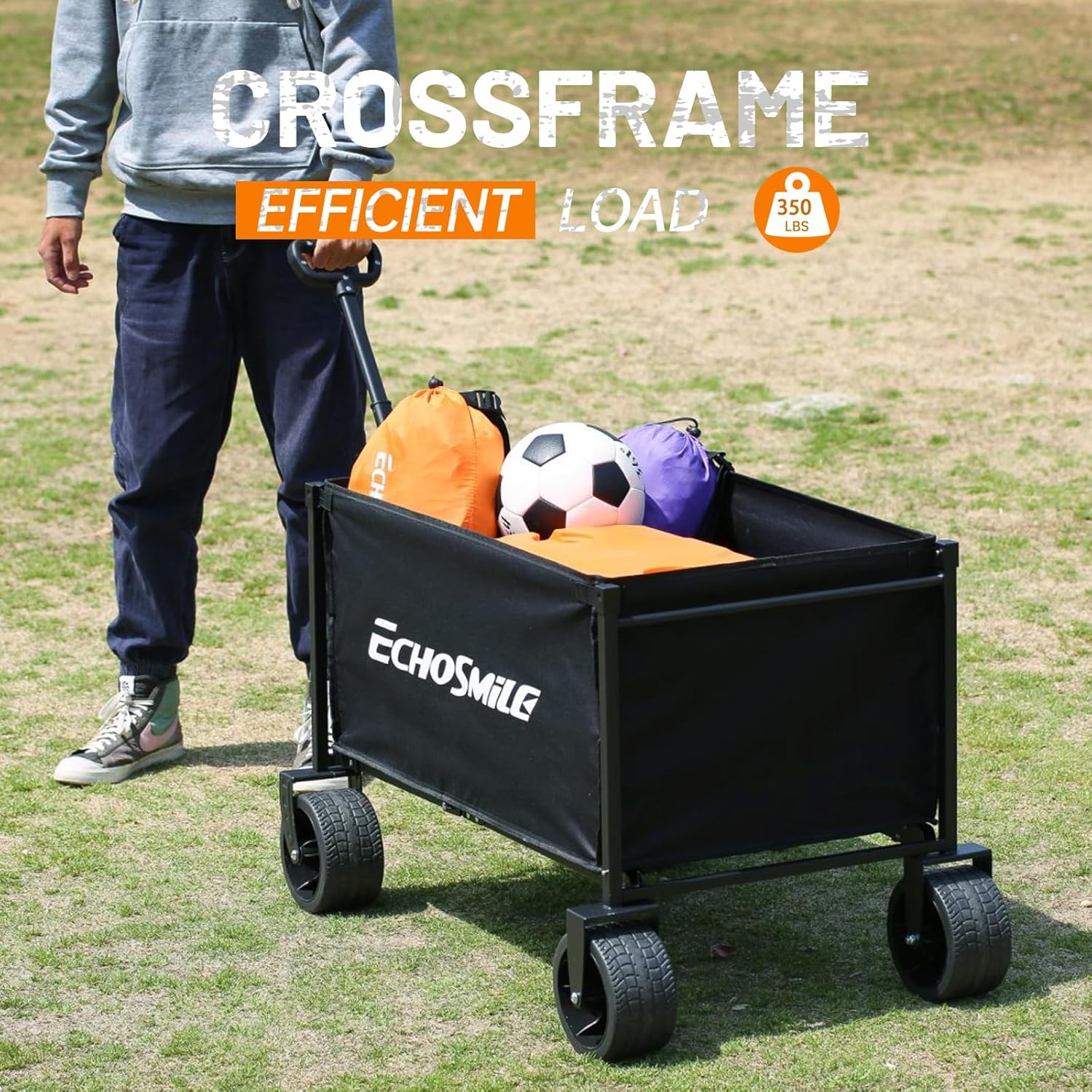 EchoSmile Collapsible Folding Wagon Cart with All-Terrain Wide Wheels, Heavy Duty Garden Cart with 350lbs Capacity,Portable Lightweight Rolling Wagon Cart for Camping Beach Sports Shopping,Black