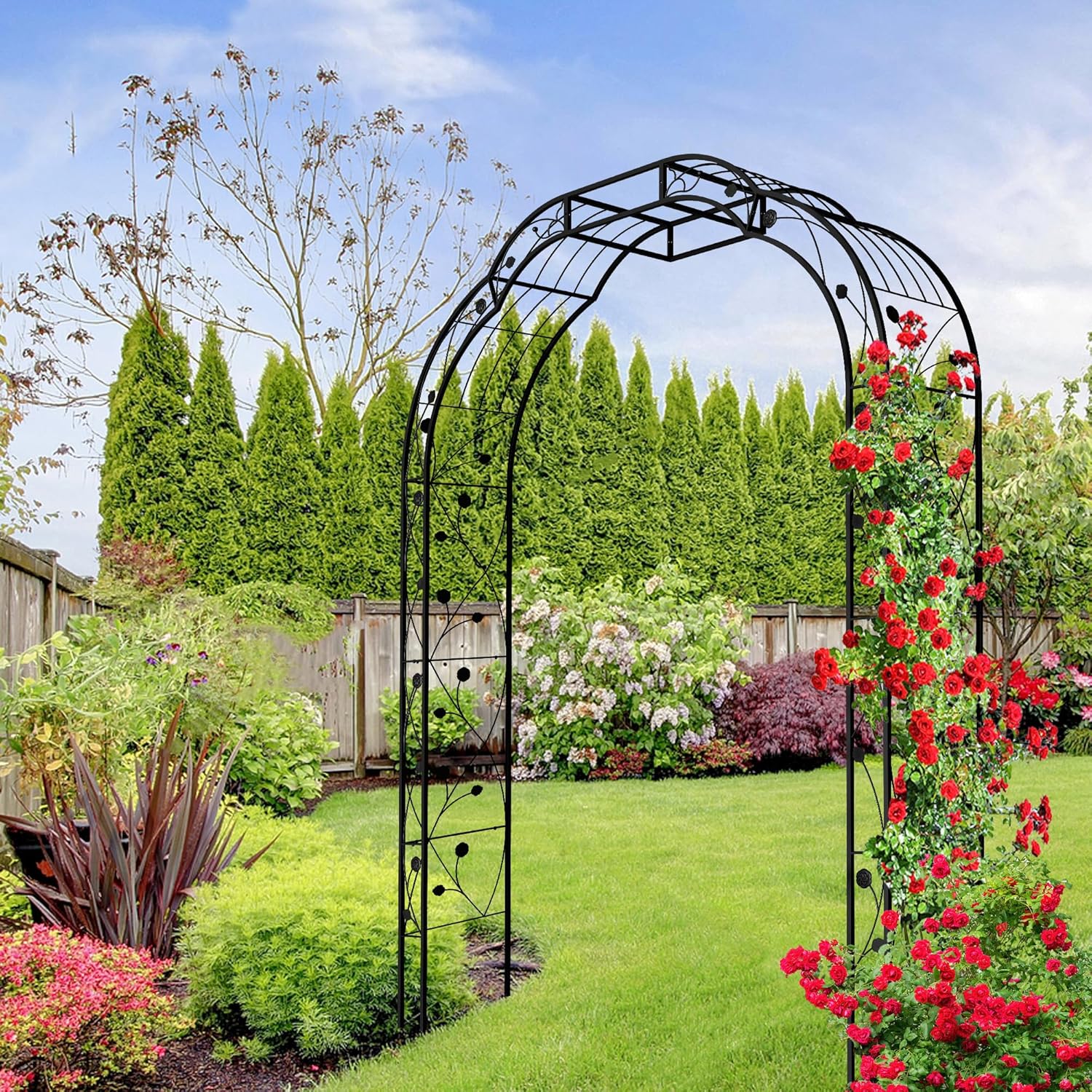 - Elegant Wide Garden Arch: The perfect combination of metal hardness and floral decoration, whether blooming or withering, this arbor trellis will be a beautiful scenery in your garden.