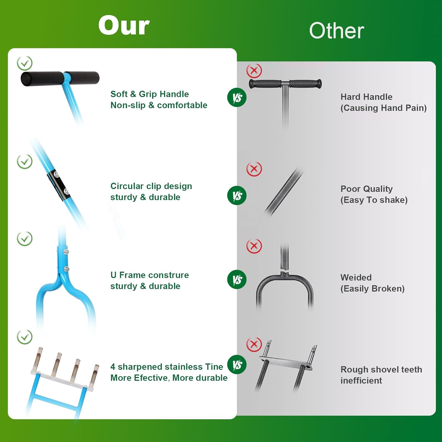 - DURABLE CONSTRUCTION: Heavy-duty steel frame with 4 stainless steel tines penetrates soil effectively, featuring a sturdy T-shaped handle for maximum leverage
