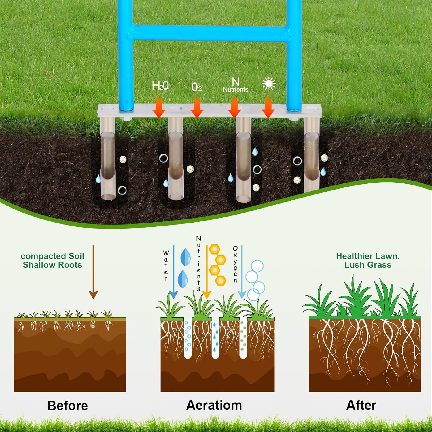 - SOIL IMPROVEMENT: Creates channels for water, oxygen, and nutrients to reach grass roots, helping transform compacted soil into a healthier growing environment