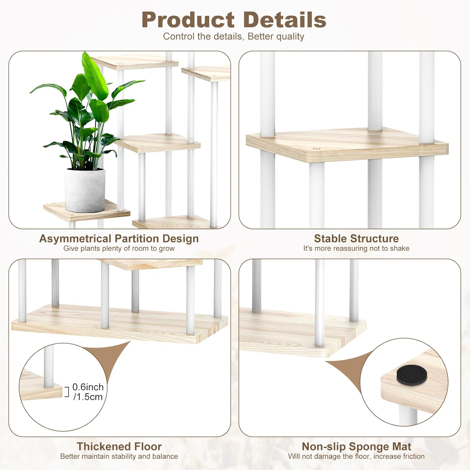 - Anti-slip Design & Easy to install: A round foot pad at the bottom, not only prevent scratching the ground, but also adjust the balance of the plant stand. You can easily assemble this Planter Display just follow the instructions.
