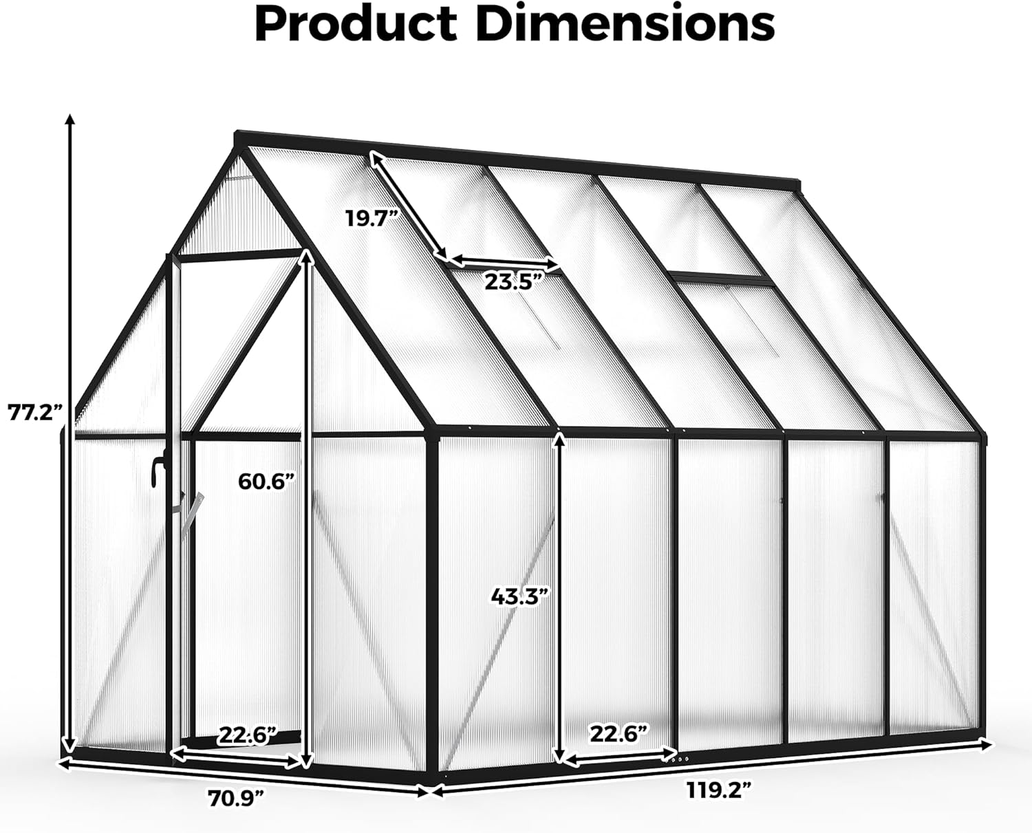 6x10 FT Greenhouse for Outdoors, Polycarbonate Greenhouse with Roof Vent, Enhanced Aluminum Large Walk-in Green House for Garden Backyard