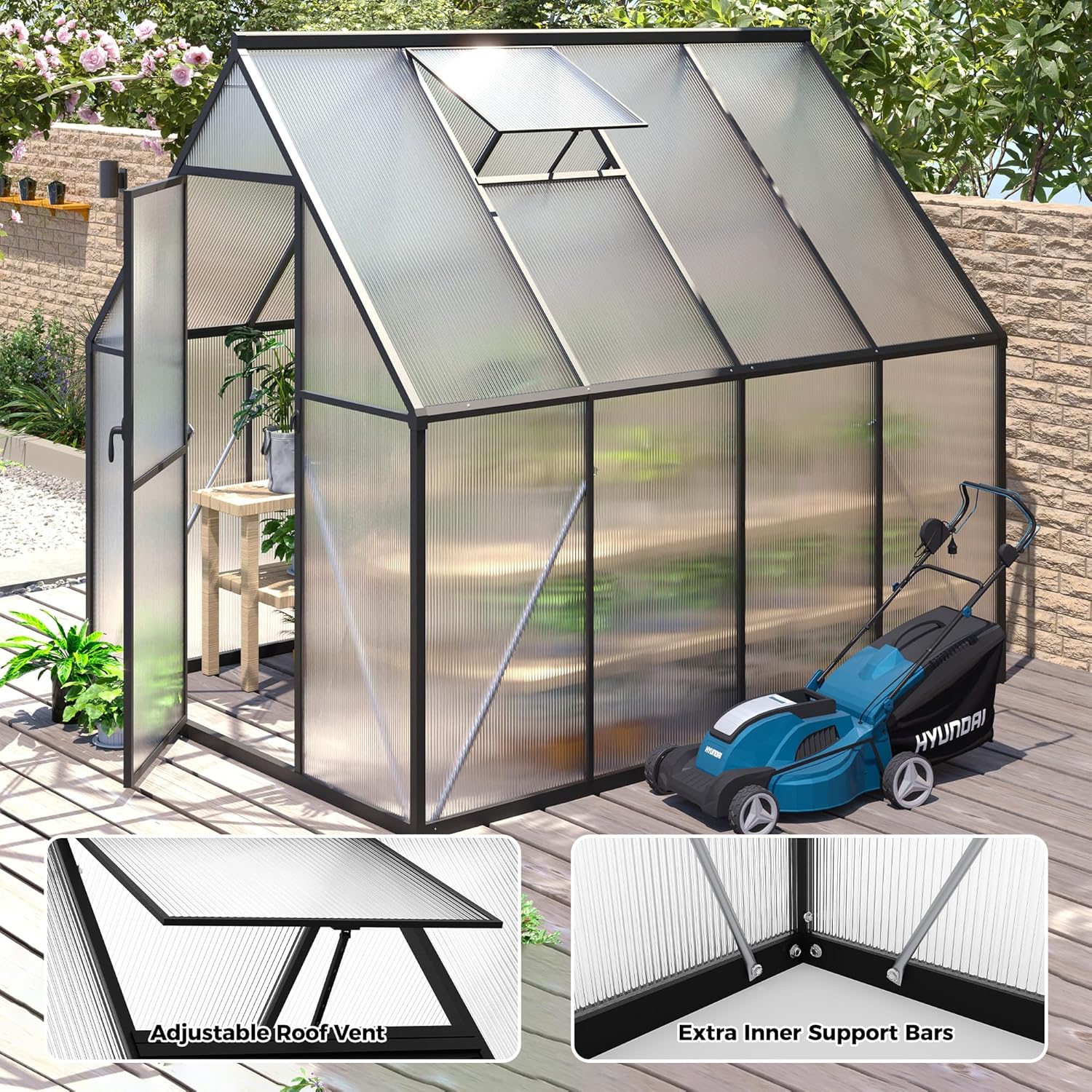 6x8 FT Greenhouse for Outdoors, Polycarbonate Greenhouse with Roof Vent, Enhanced Aluminum Large Walk-in Green House for Garden Backyard