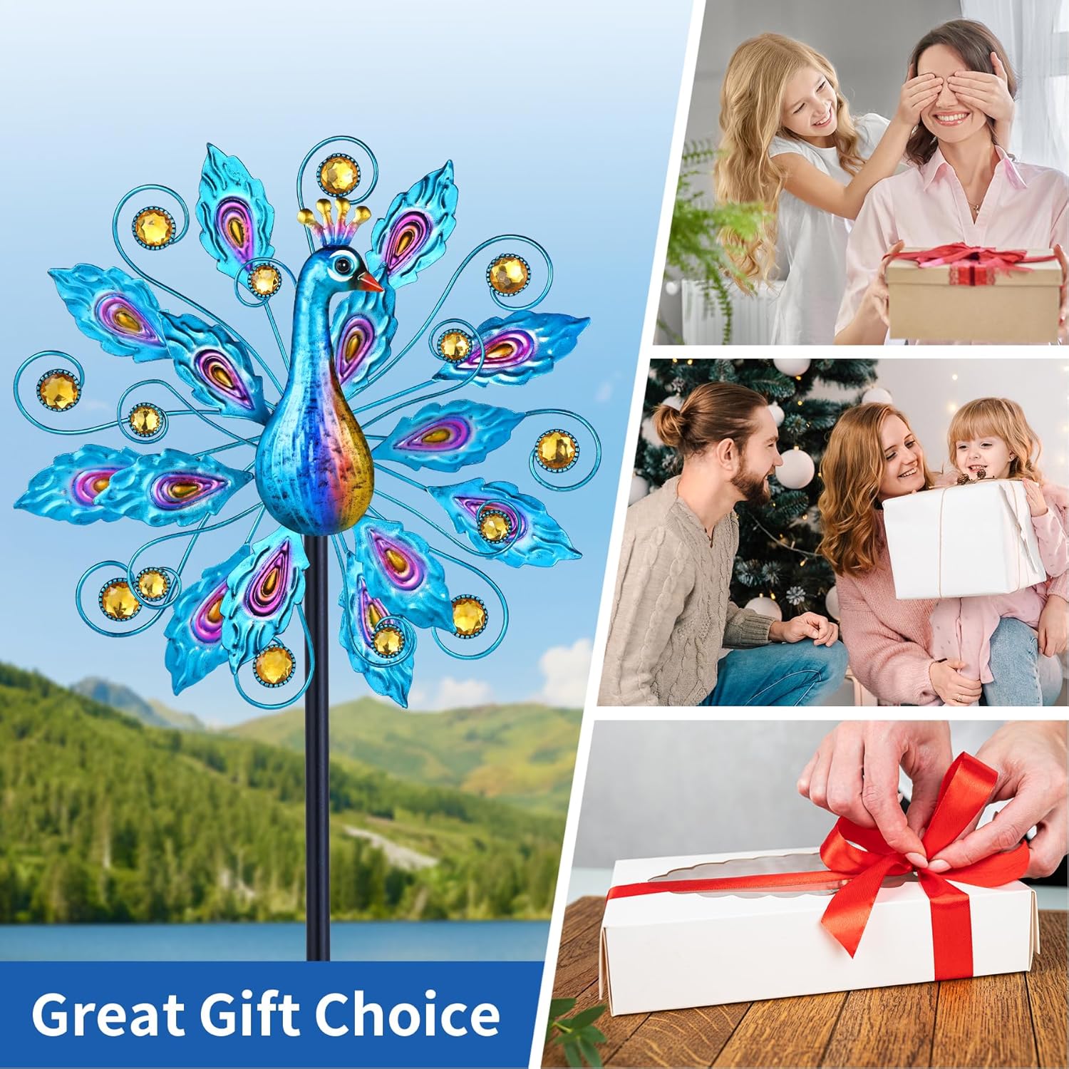Wind Spinner for Yard and Garden Peacock Windmill Outdoor Metal Kinetic Art Wind Sculpture for Yard Patio Lawn Decoration 55 Inch,Gifts for Women