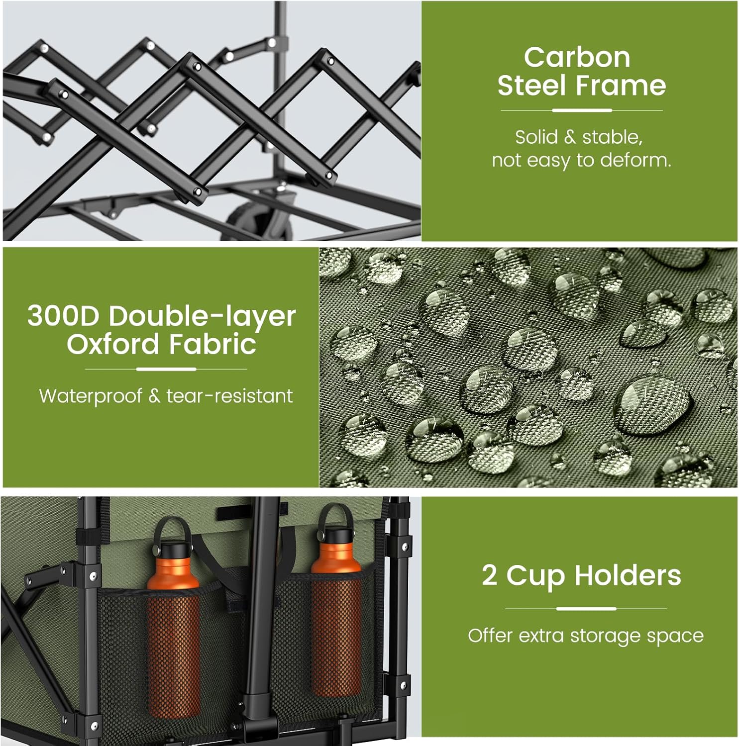 - Premium Materials & Sturdy Construction: Made with a high-strength carbon steel frame and high-quality 300D Oxford fabric, this portable wagon is built to last and is water-resistant and scratch-resistant. It can handle harsh weather and heavy loads with ease.