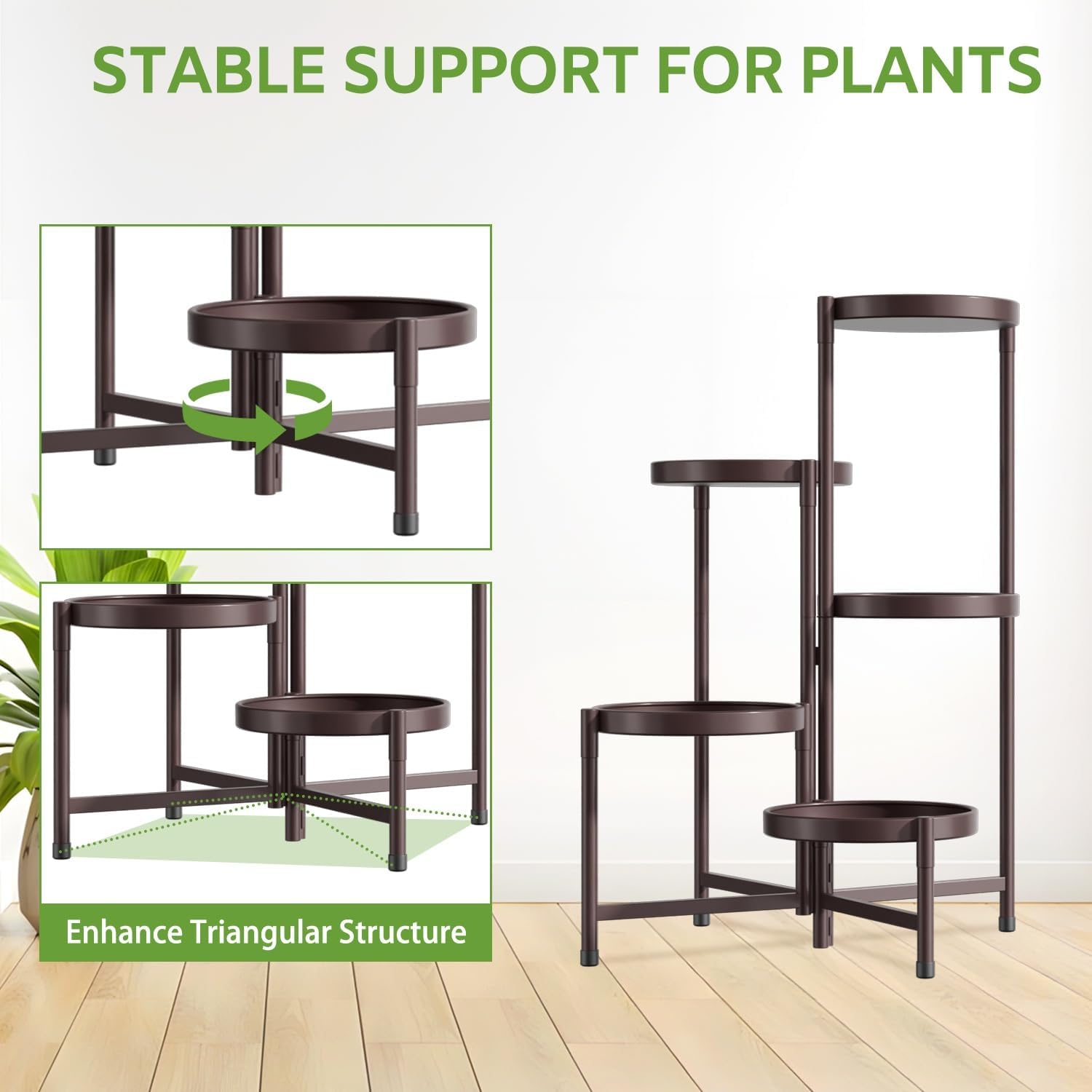 - Unique Modern Style Holder: The 5 tier plant stand is designed with a unique spiral tiered structure that can hold up to 5 pots without blocking each other, so that each of your plants can fully enjoy the sunlight. Modern and classic in style, this outdoor plant stand is perfect for decorating balcony, porch, garden, patio, window and office