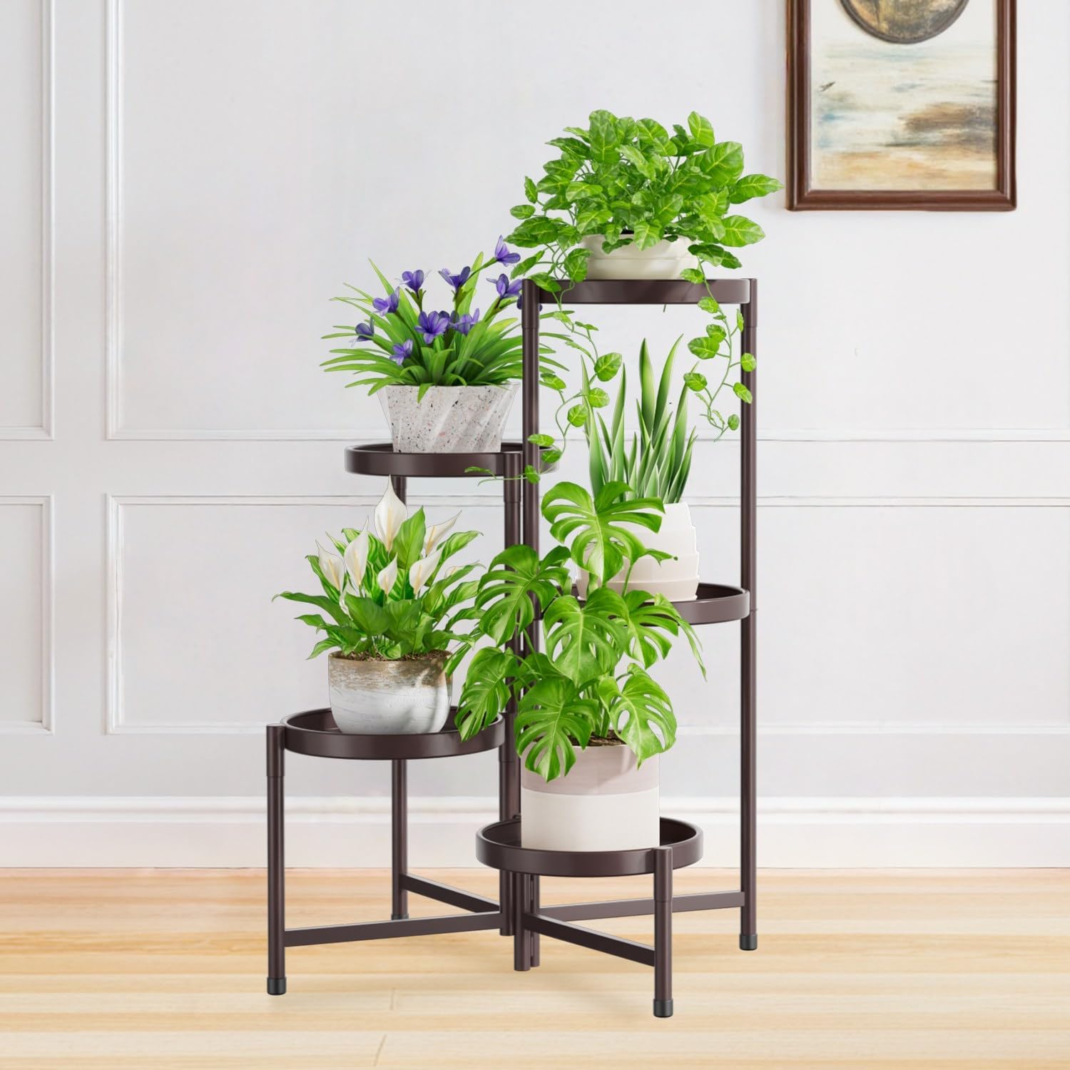 iDavosic.ly 5 Tier Large Plant Stand Indoor, 10 Inch Wide Tall Corner Metal Plant Stands Outdoor for Multiple Plants, Folding Tiered Flower Display Holder Rack Shelf, Violet Bronze