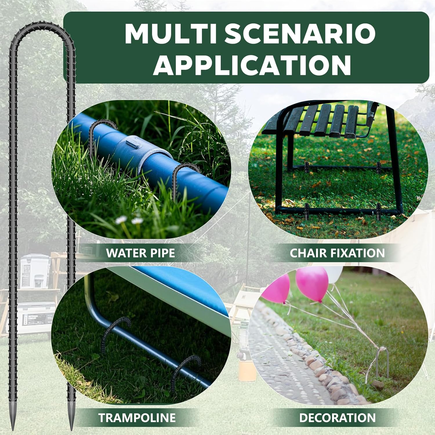 - Wide Applications: Versatile and reliable, our lawn stakes are perfect for a variety of outdoor projects. Whether you're securing tents, tarps, or landscape fabric, trust in their reliability and versatility for all your anchoring needs