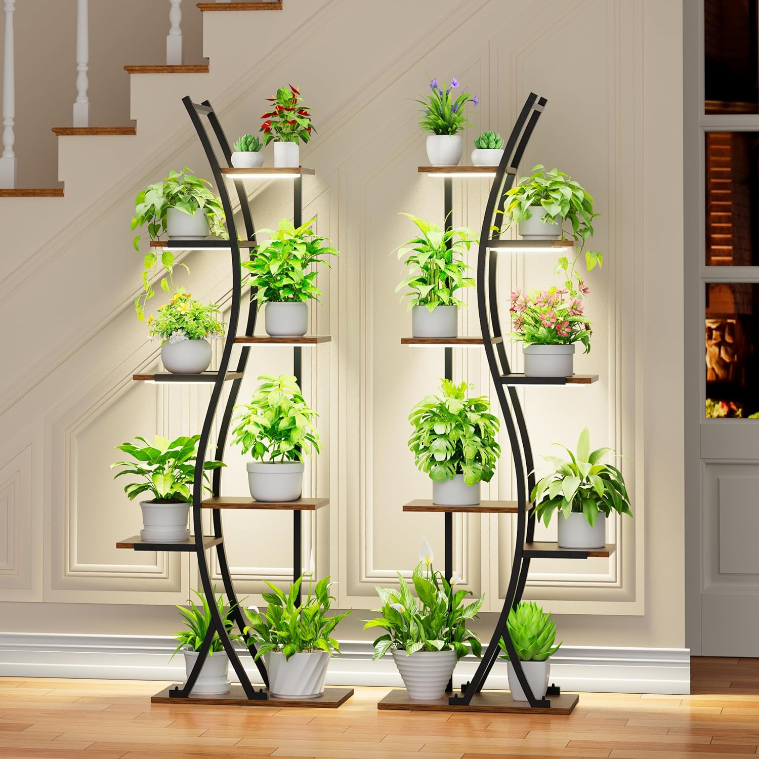 Tall Plant Stand Indoor with Grow Light, 62" 7 Tiered Plant Shelf Holder, Metal Large Corner Shelves Display Rack Flower Stand for Living room, Patio, 2 Pack