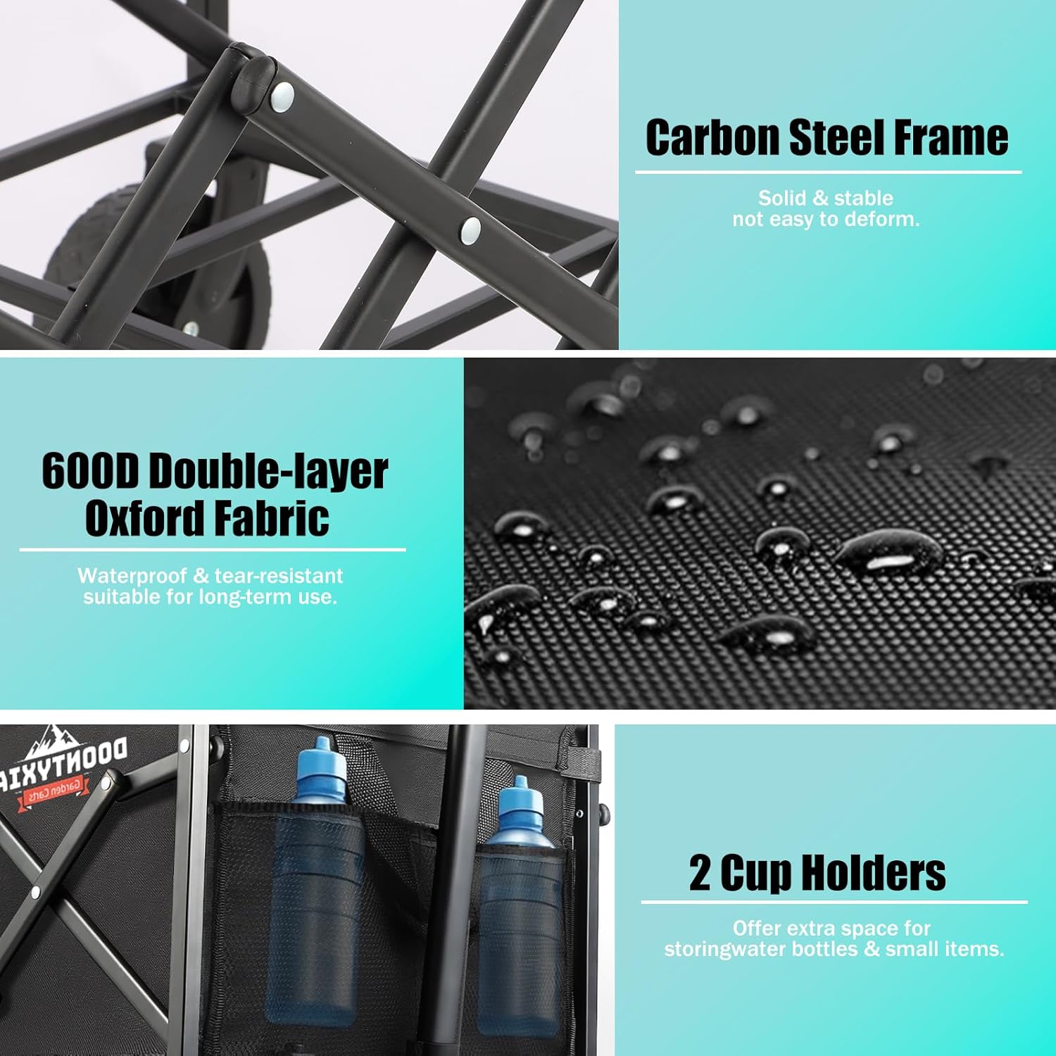 - Rock-Solid Durability: Built with a heavy-duty carbon steel frame and double tear-resistant 600D Oxford fabric, this collapsible wagon cart holds up to 360 lbs with ease. Whether hauling groceries, gear, or garden supplies, this wagon cart designed to handle tough jobs without a hitch.