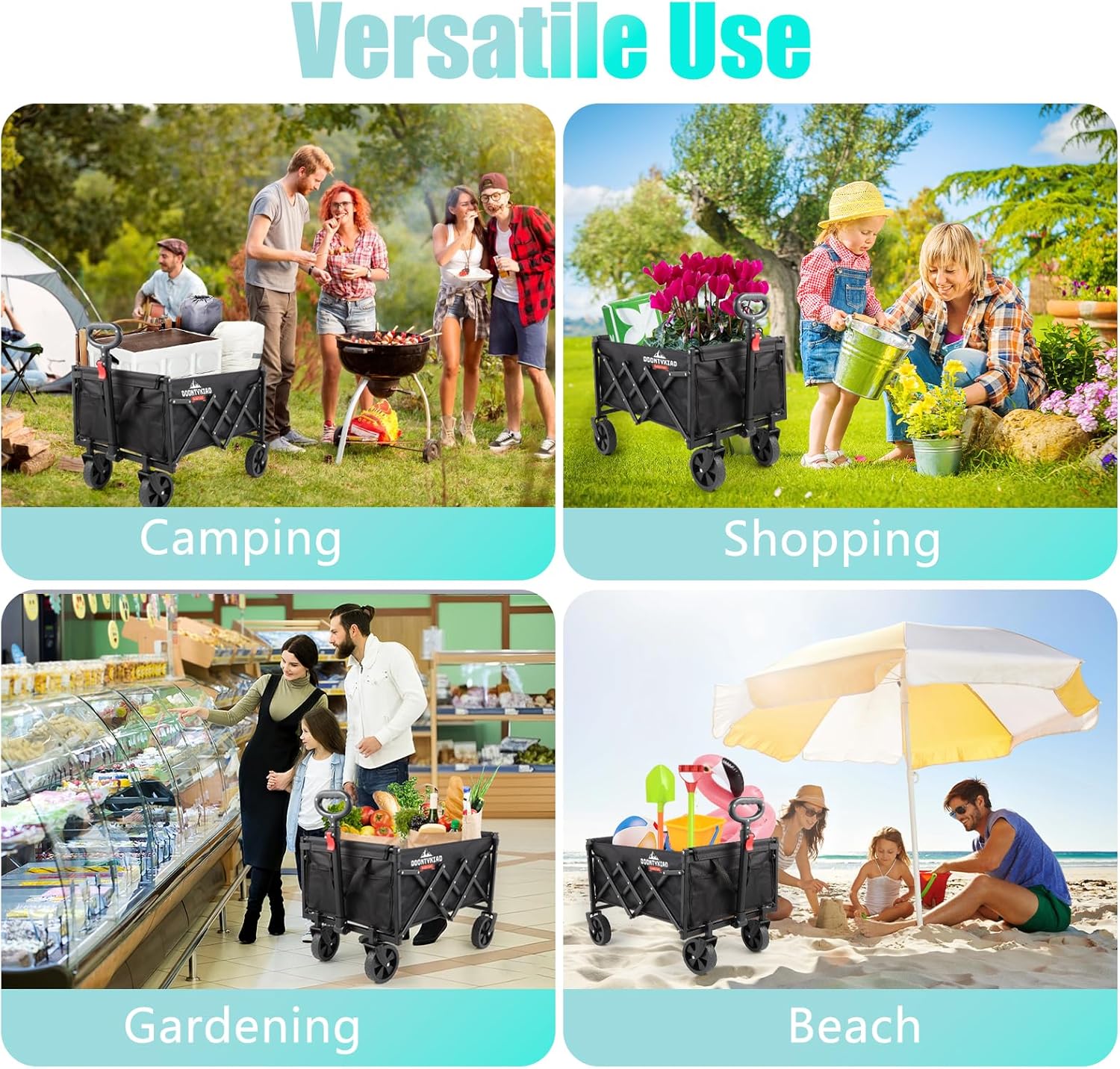 - All-in-One Carry Solution: The collapsible wagon cart adapts to various uses, from grocery shopping and outdoor picnics to gardening and moving supplies. Strong, spacious, and built for convenience—this folding wagon cart is the ultimate companion for any hauling task.