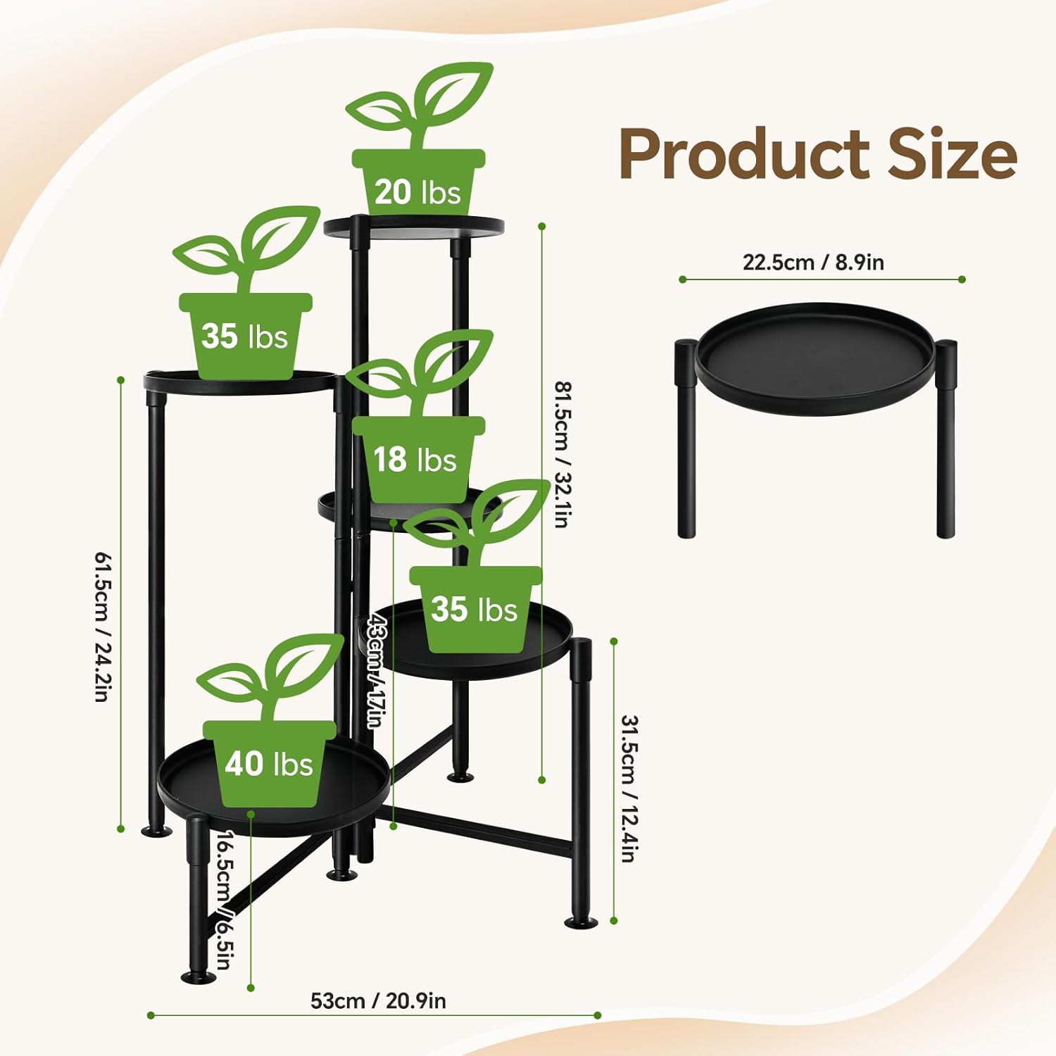 - Premium Outdoor Plant Shelf: Crafted from high-quality iron with high-temperature electrostatic spray paint, this 5-tier plant stand is rust-resistant, sturdy, and built for long-term use—perfect for outdoor patios and gardens