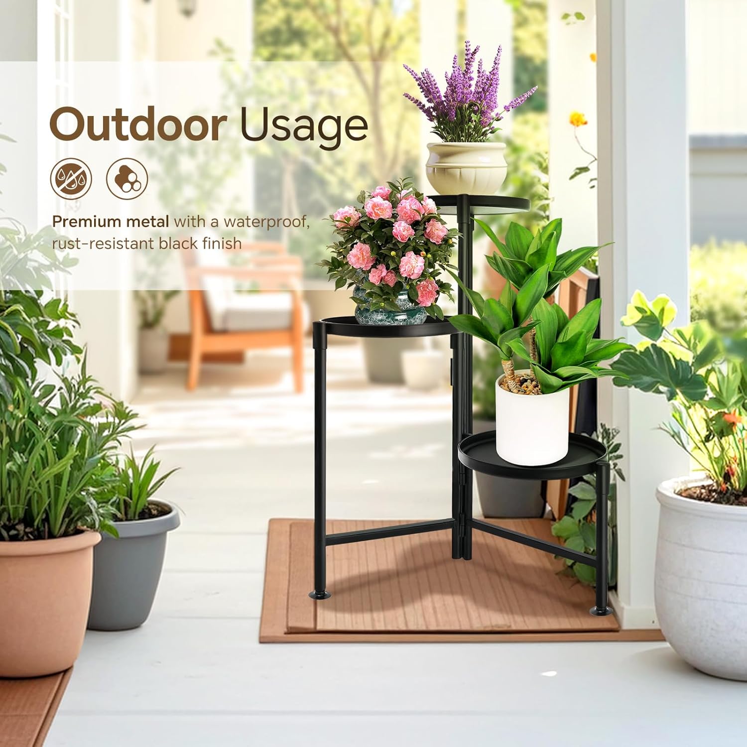 - Premium Outdoor Plant Shelf: Crafted from high-quality iron with high-temperature electrostatic spray paint, this 3-tier plant stand is rust-resistant, sturdy, and built for long-term use—perfect for outdoor patios and gardens