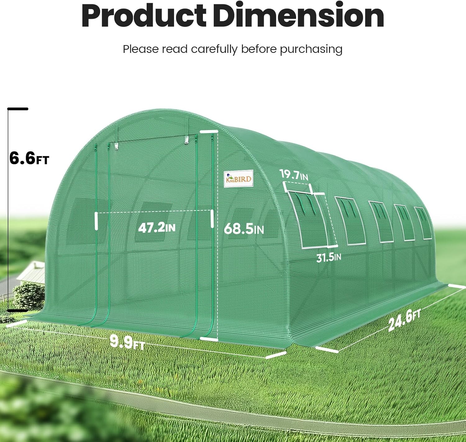 KING BIRD Premium 25x10x6.6FT Greenhouse for Outdoors, Large Walk-in Heavy Duty Galvanized Steel Frame, Mesh Door Screen Window Upgraded Zipper Tunnel Hoop for Garden Plant Winter, Green
