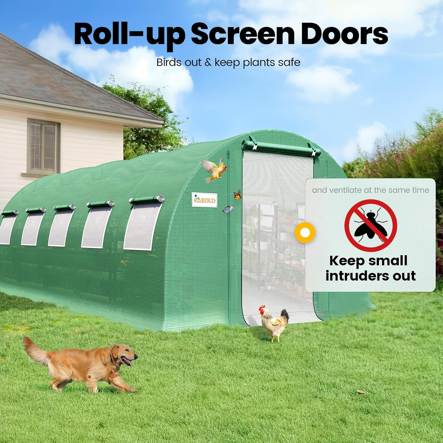 - [Temperature & Humidity Management]--Featuring 10 roll-up screen windows plus 2 door-netting, it facilitates temperature and humidity control. It increases temperature promoting early spring plant growth, enhances ventilation on hot summer days, and retains warmth during the winter. It keeps plants from pouring rain, winds, and snow.