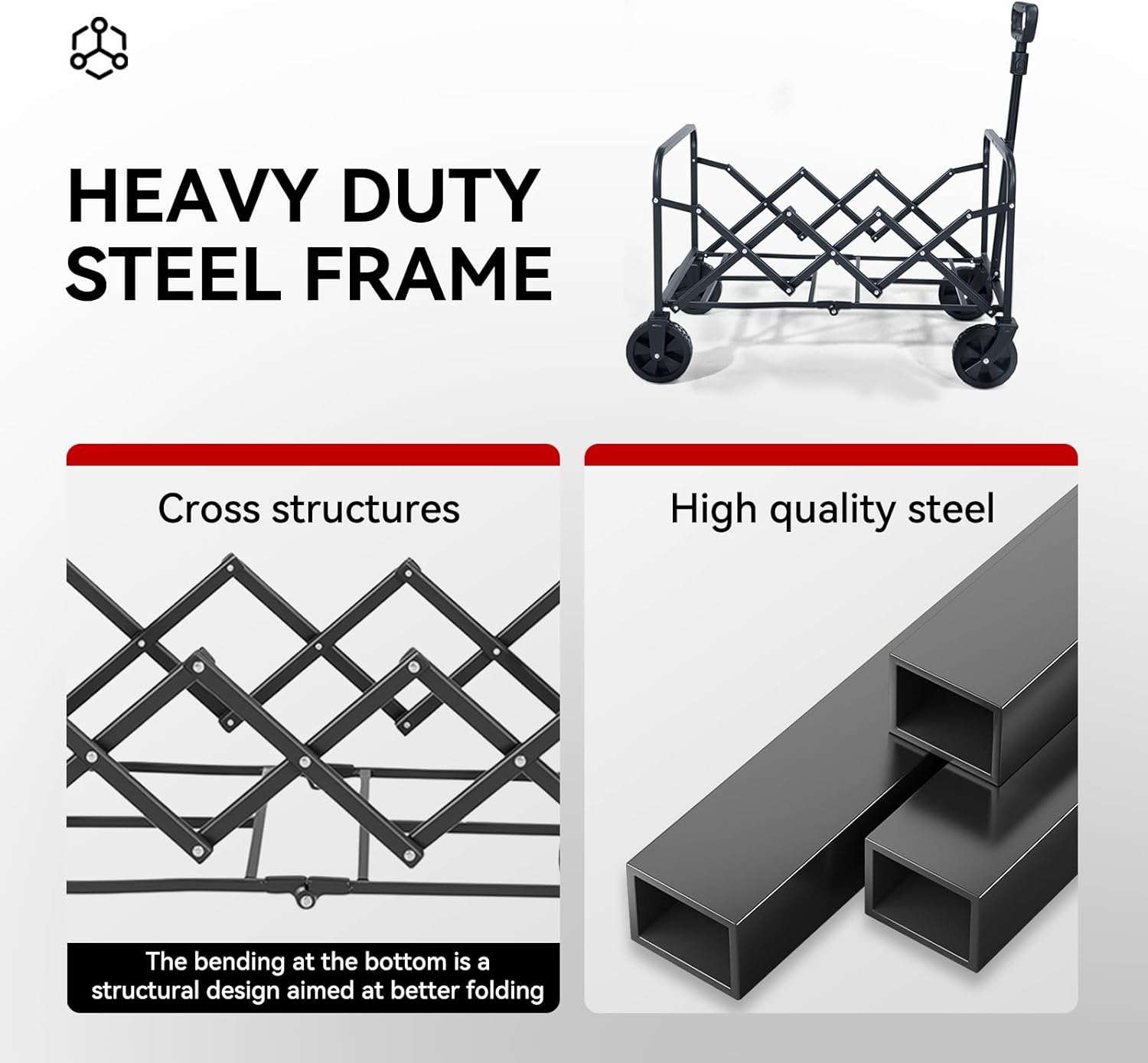 - CONVENIENT AND QUICK FOLD: Just lift up the hand strap on the bottom plate of wagon cart ,you can complete folding.You will get a wagon folded size with 16.7 x 28.3x 9 inches,never taking your car trunk too much space