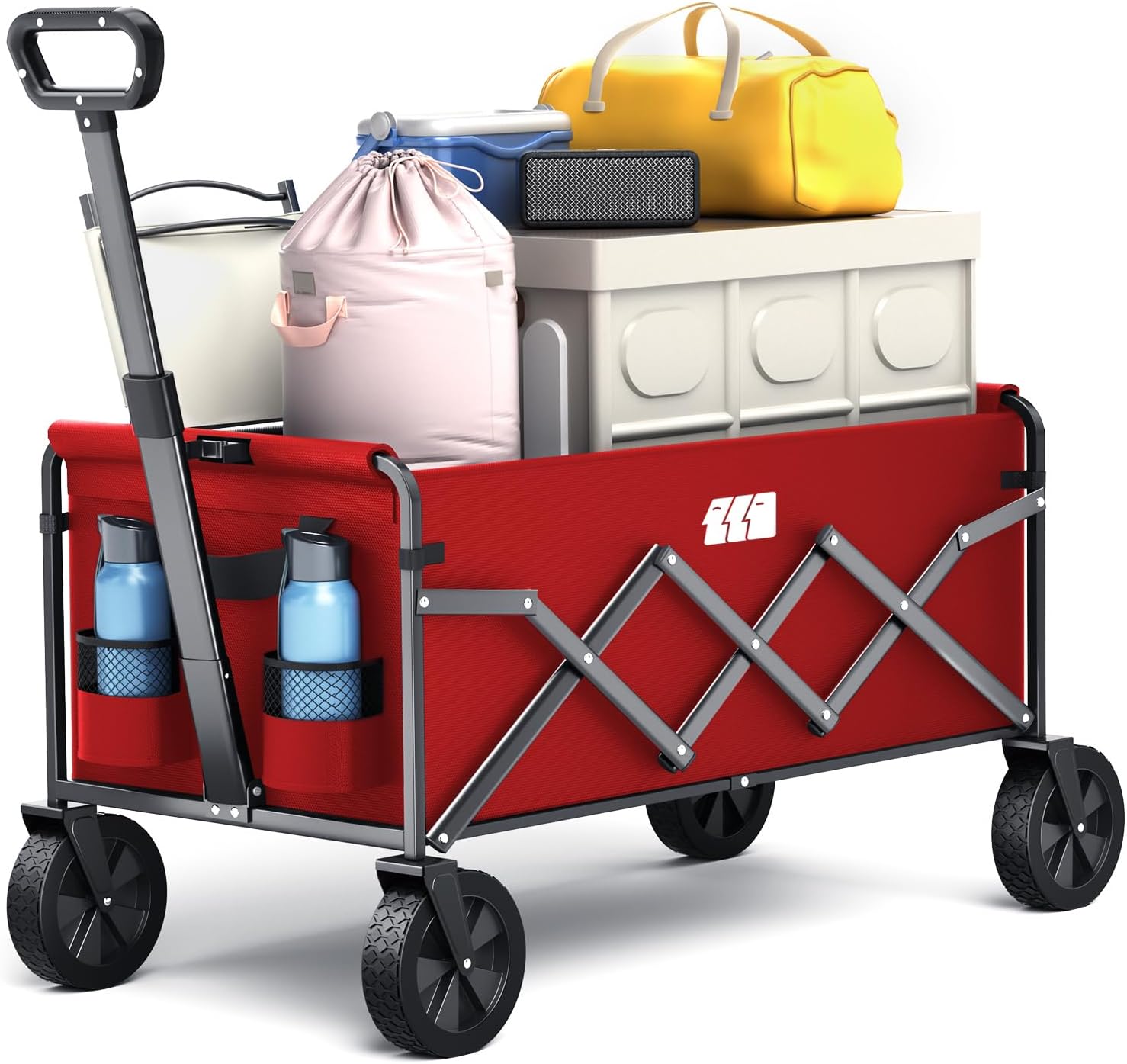 - ERGONOMIC HANDLE DESIGN: The handle design of the camping wagon has an automatic rebound function to prevent tripping. You can adjust the height and angle according to your own needs to achieve a good outdoor time experience
