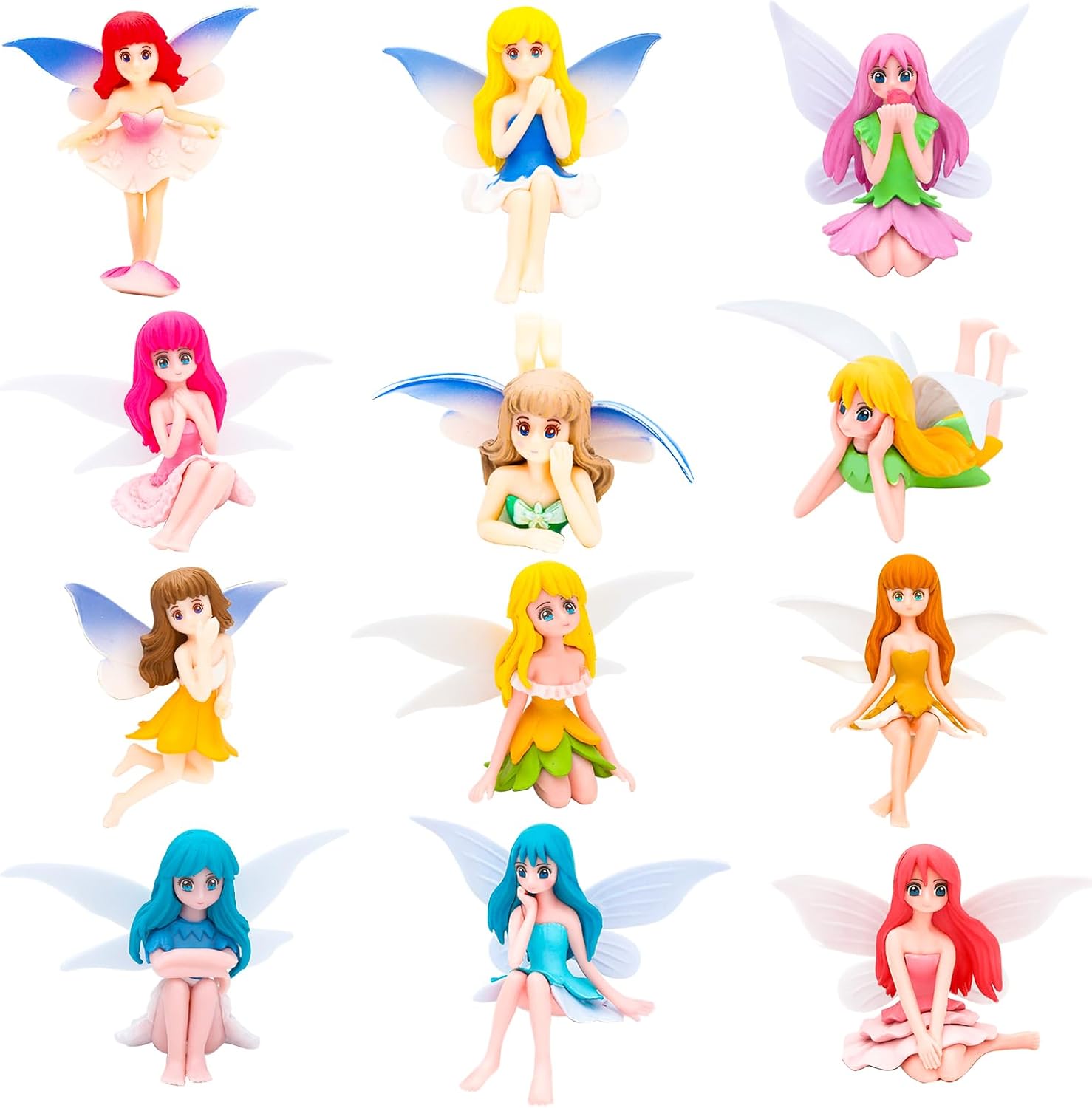 ONEST 12 Pieces Miniature Fairy Garden Accessories Small Fairy Figurines Hand Painted Fairies Figures Girl Fly Wing Figurines for Car Decor Fairies Garden Flower Pot Birthday Cake Topper