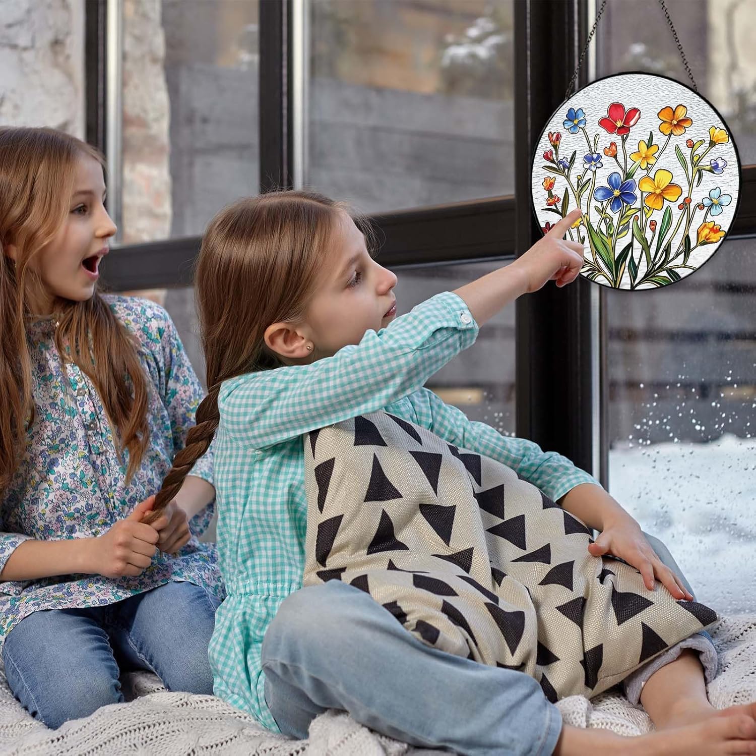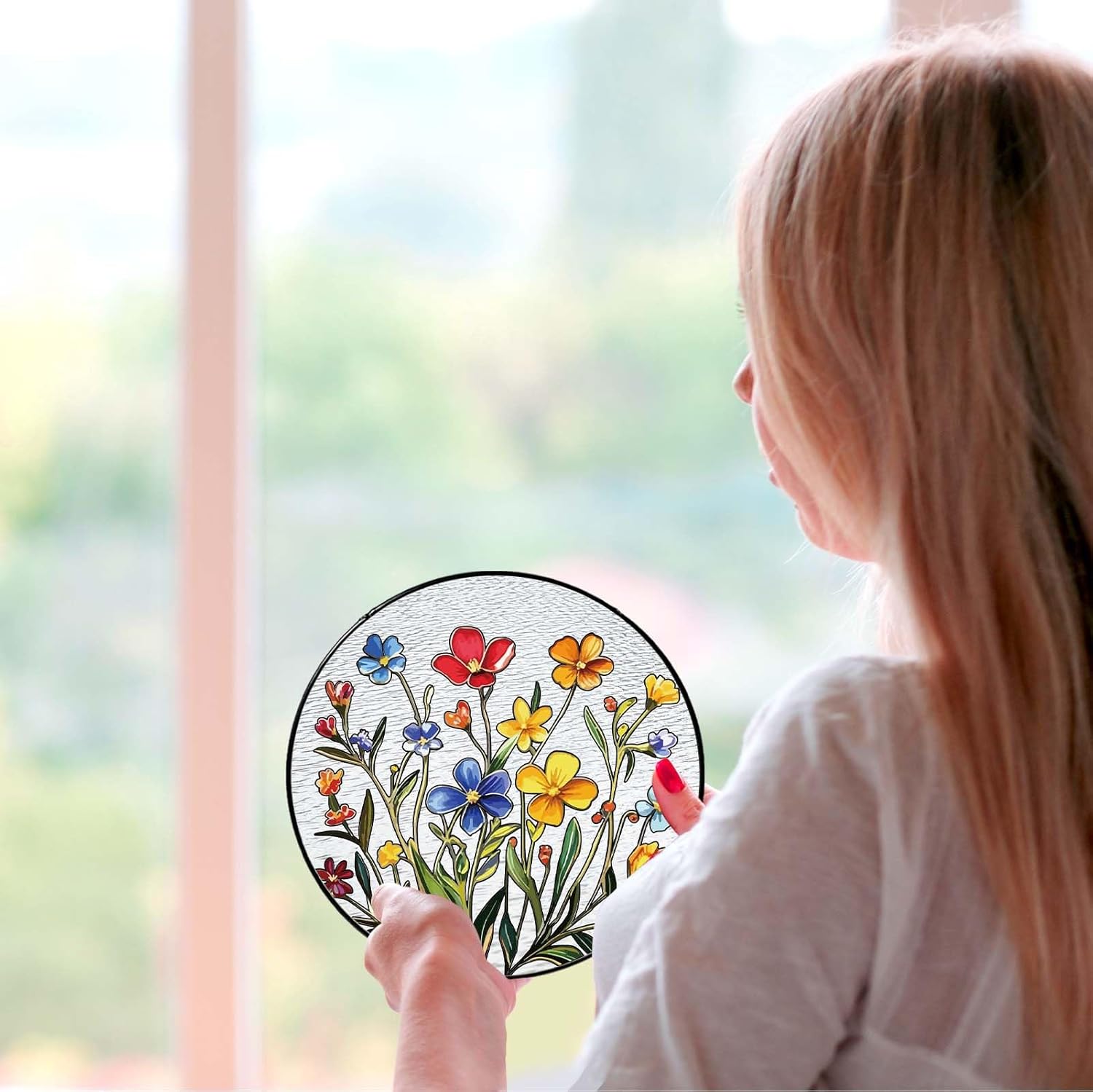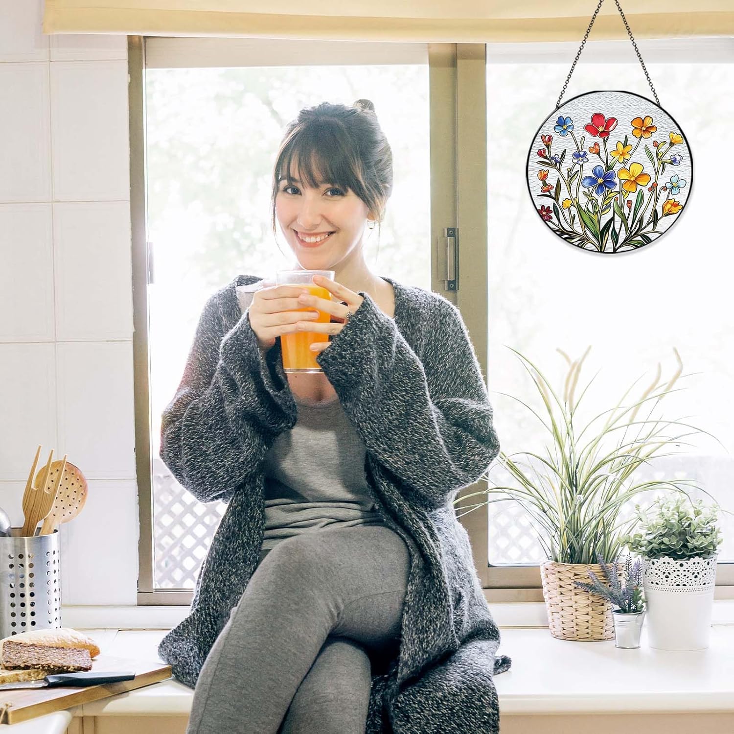 Flowers Sun Catcher Stained Glass Window Hanging Flower Decor Gifts for Women Wall Decor Handmade Sun Catcher Botanical Decoration for Home Garden Housewarming Gifts