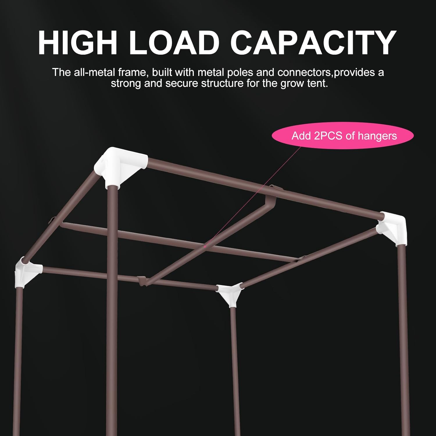- High Quality Materials: The grow tent is made of 1680D Oxford canvas material, which is thick, durable, double-stitched, tear-resistant and not easy to break, it can keep all the light inside the tent. Reliable zippers provide smooth closing and opening. Stable metal frame design, firm and will not shake, it can provide excellent support.